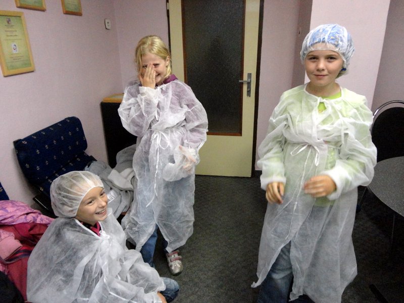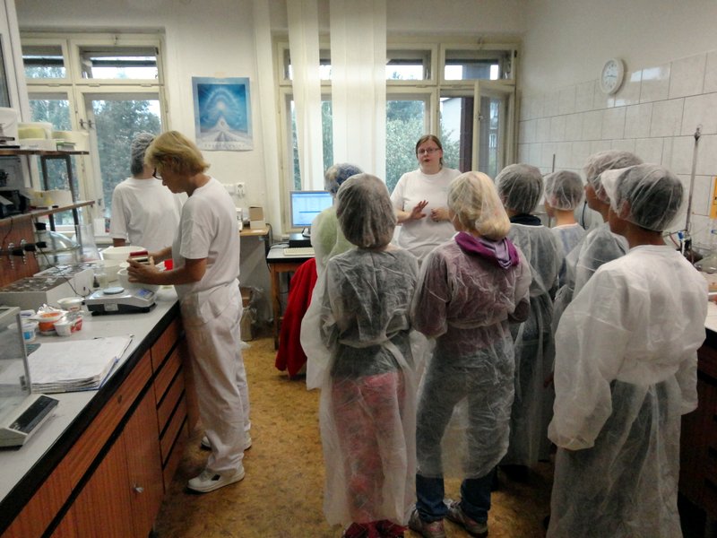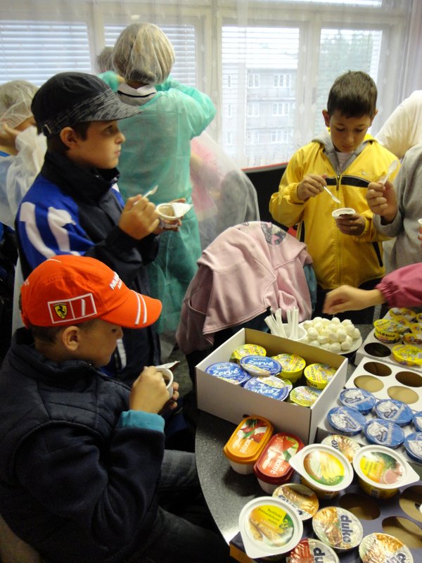 V úterý 20. září 2011 jsme jeli se třídou na exkurzi do Bystřice pod Hostýnem. Hned po prvním zvonění jsme šli na nádraží, kde na nás čekal autobus. Cestou jsme začali plnit úkoly, které jsme dostali od paní učitelky napsané na lístečku. U řidiče jsme zjistili, kolik kilometrů je to z Dřevohostic do Bystřice. Z autobusového nádraží jsme pak vyrazili rovnou do mlékárny. Tam jsme si poznačili odpovědi na další otázky. Všechno nám řekla naše průvodkyně slečna Bačíková. A pak jsme se museli obléknout do bílých plášťů, na hlavy jsme si nasadili slušivé čepičky, ruce vydrhli mýdlem a desinfekčním prostředkem a společně vstoupili do laboratoře, kde se zkoumá kvalita výrobků i do samotného provozu, kde se výrobky vyrábí a balí. Výklad slečny průvodkyně jsme někdy ani neslyšeli, takový kravál vydávaly stroje kolem nás. Nevěděli jsme, jestli se máme dřív dívat na sýrovou hmotu, ze které pracovnice mlékárny pletly pletýnky (sýr jadel) nebo pozorovat plničky pomazánkového másla nebo sledovat laksymáčky, jak se samy zavírají fólií a z pásu skládají přímo do krabic. Vše bylo moc zajímavé. Nakonec jsme dostali mléčné výrobky k ochutnání. Poděkovali jsme a vydali se do obchodu, abychom zjistili, kolik výrobků místní mlékárny prodává. Pak jsme ještě stihli zajít na zámek do informačního centra, prohlédli jsme si mapu mikroregionu Podhostýnsko, měli chvilku rozchod a pak už uháněli zpět do školy, kde jsme ještě stihli všechny nově nabyté informace zapsat do pracovního listu, který je součástí naší vlastivědné projektové práce Poznáváme náš region. Výlet se nám moc líbil a těšíme se na další.
