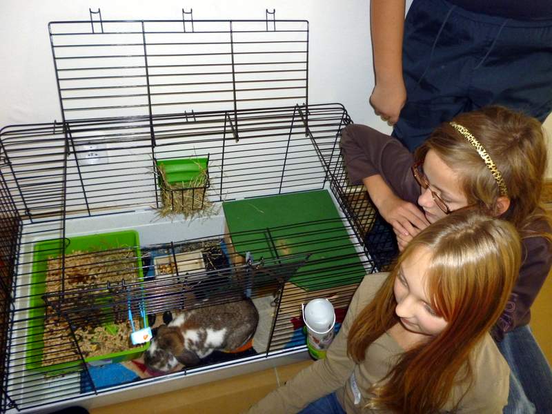 V učebně přírodopisu se nám zabydlel zakrslý králíček, jmenuje se Samuel, má tři roky a vzorně se o něj starají žáci 6. třídy. Králíček je nenáročným ale zároveň věrným a přítulným kamarádem, který si dokáže získat dětské srdce.