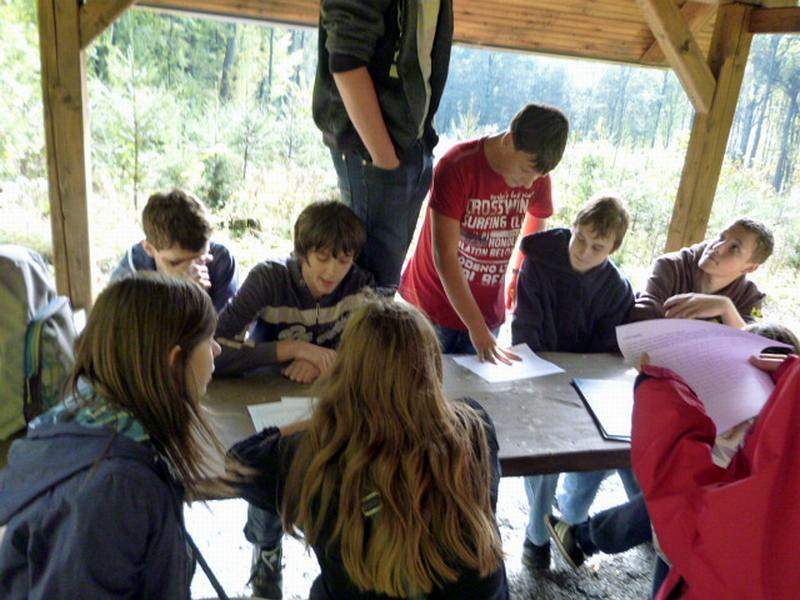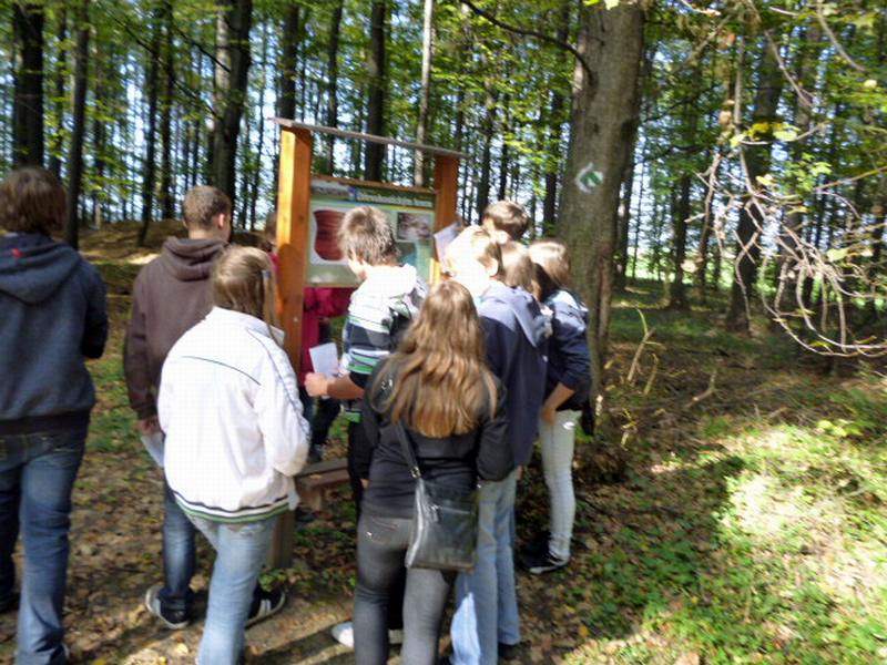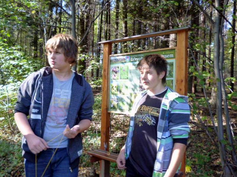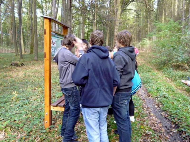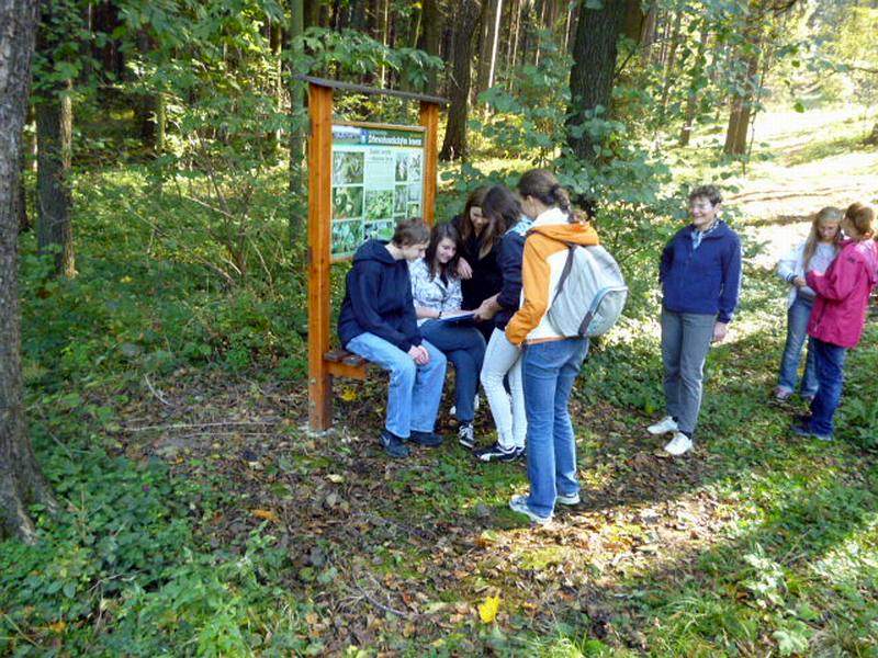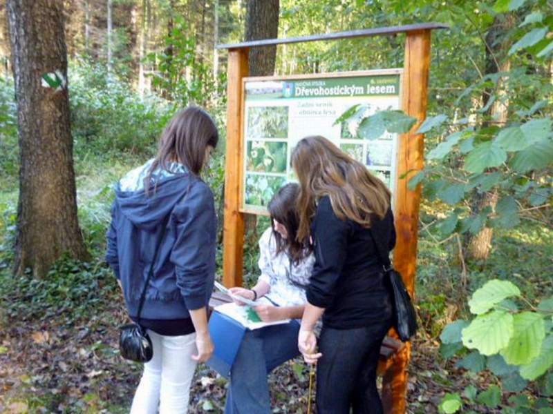 Na naučné stezce Dřevohostickým lesem se žáci seznamují s významnou lokalitou Dřevohosticka. Jsou provázeni 12 naučnými tabulemi, které poskytují cenné informace o přírodních a společenských podmínkách krajiny. Na příjemné procházce plní zadané úkoly. Luští tajenku, učí se orientaci v terénu. Prakticky zkoušejí využití azimutu a mapy. Hledají školní poklad nebo si posedí u některého ze zastavení, aby se občerstvili. Poznávají kouzlo lesa a jeho význam. Vítězí ti nejpozornější.