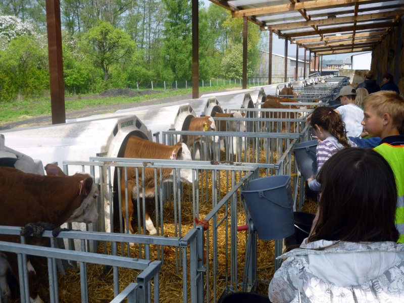Nebývalou radost a nadšení přinesla dětem návštěva Zemědělského družstva v Dřevohosticích. O hospodářských zvířatech se toho děti nejvíc naučí přímým pozorováním. Proto jsme se vydali na prohlídku odchovu malých telátek. Děti si je zamilovaly na první pohled. Zpočátku je nesměle pozorovaly, pak je lákaly na granule. Když se i telátka osmělila, nechala se hladit a dětem olizovala ruce jako dudlíky. Některé děti si telátka i pojmenovaly. Při loučení pak bylo slyšet: „Ahoj Kopýtko, Čokoládko, Stračatelo …. , měj se tu hezky, přijdu se na tebe zas podívat!“ 3. Třída 4. Třída Z písemných prací našich čtvrťáků: Dnes jsme se vydali s naší třídou a paní učitelkou Zajícovou do zemědělského družstva k telatům. Šli jsme tam, protože se o tom učíme. Zalíbilo se mi jedno telátko. Dala jsem mu jméno GOGO. Bylo moc přítulné a mazlivé. Nebyla jsem jediná, kdo si oblíbil nějaké tele. Bylo mi hrozně líto jednoho mrtvého telátka. Zemřelo asi při porodu. Když jsme odcházeli, tak jsme tu kravičku litovali.. Potom mě zaujaly „řízky“. Nechápu, jak to můžou ty krávy jíst! Nakonec se celá třída zvážila na váze, kde se váží obilí. Vážili jsme 820,-Kg. Návštěva teletníku byla úžasná.
