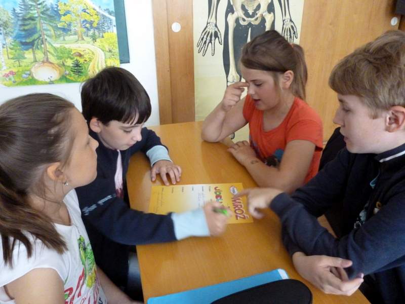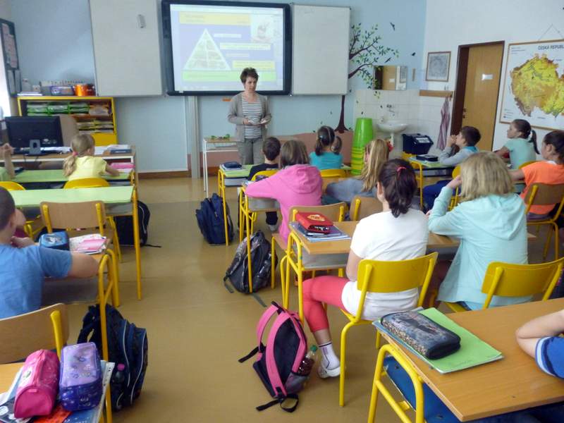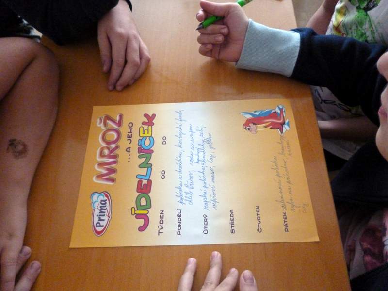Na učivo o lidském těle jsme se těšili. To jsme ještě nevěděli, co nás čeká. Každou hodinu paní učitelka vylosuje dva žáky. Ti dostanou téma – jednu orgánovou soustavu (např. trávicí) a mají za úkol si připravit referát. Další hodinu se stanou učiteli a všechno, co si připravili, nám povídají. Paní učitelka jen sedí a poslouchá, sem tam je opraví nebo doplní a je spokojená, jak nám to jde. Tuto středu nás však čekalo milé překvapení. Referát dostala vedoucí školní jídelny paní Cholastová a povídala nám o své práci, o zdravém stravování, o tom, která jídla jsou zdravá a proč bychom jiná měli omezit. Bylo to moc zajímavé a dost jsme se toho dověděli. Nakonec jsme si zasoutěžili. Ve skupinkách jsme vymýšleli dobré a hlavně zdravé jídelníčky do školní kuchyně. Vítězné družstvo ve složení Monika, Aneta, Patricie a Kuba dostalo zdravé müsli tyčinky.