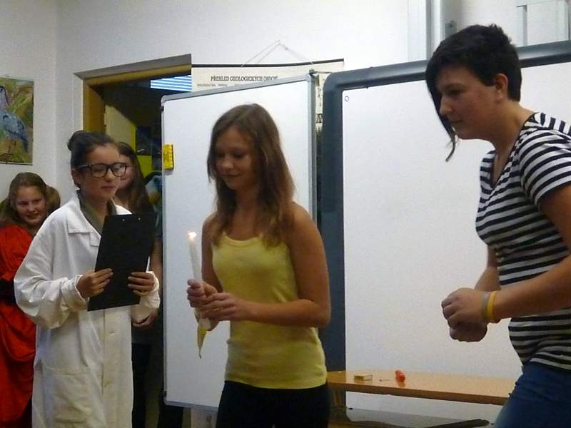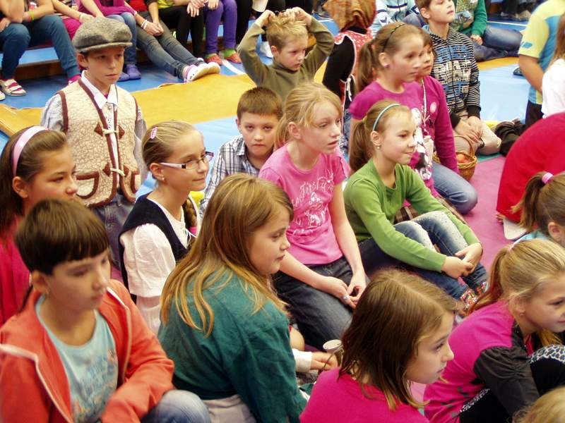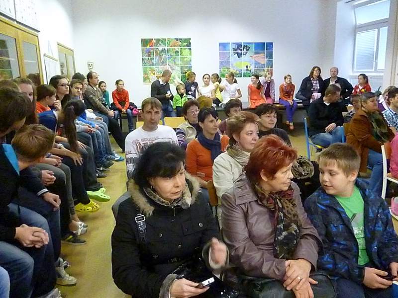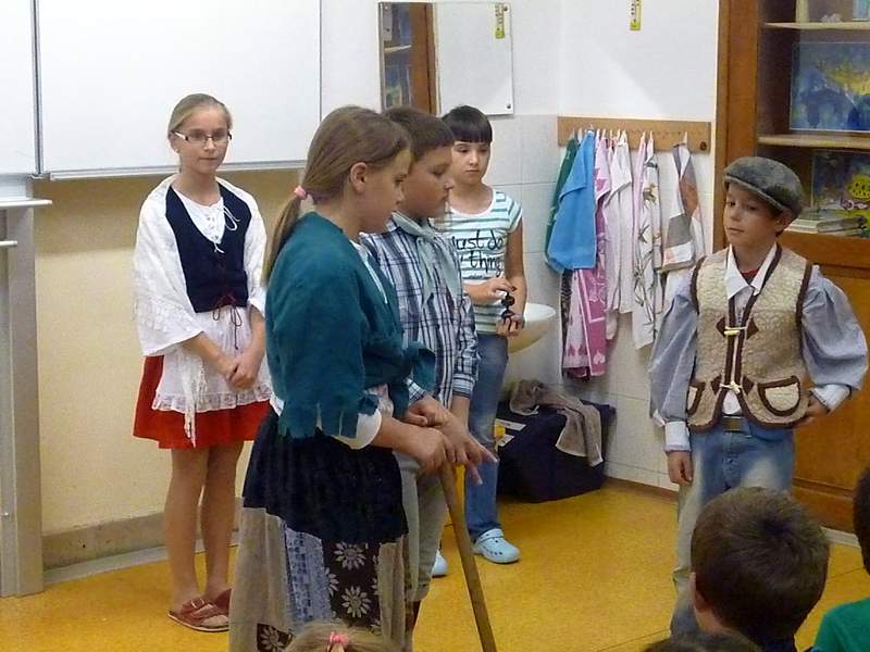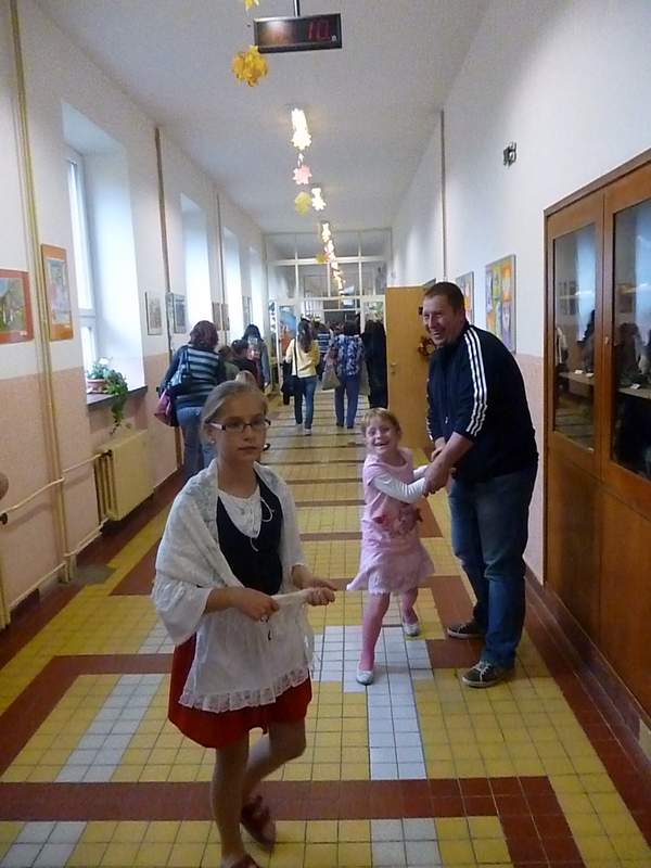 V pátek 18. října odpoledne se naše škola otevřela všem, kteří si chtěli zase po čase prohlédnout prostory, kam dříve chodili, či kde se dnes učí jejich děti a vnoučata. Děti se svými učitelkami a učiteli pro ně připravily pestré pásmo básní, písní, pohádek, scének i tanečků, ale zároveň krásně vyzdobily svou školu v barevných a zářivých tónech podzimu. Přípravy na tuto akci nám dali pořádně zabrat, ale podle nadšeného zájmu návštěvníků i báječné atmosféry celého odpoledne se to určitě vyplatilo. Veliké množství rodičů, prarodičů, kamarádů, zkrátka všech přátel školy, začalo přicházet už před 15. hodinou a jejich proud se nezastavil další dvě hodiny. Ve vstupu do školy je vítali žáci s video ukázkami ze života školy a také reprezentativní výstava zdobených dýní vyrobených šikovnýma rukama našich žáků (občas i maminek). Ve dvou časových intervalech bylo připraveno kulturní pásmo žáků 1. a 2. stupně, které všechny děti předvedly s chutí a patřičným nasazením. Návštěvníci tak s překvapením zjistili, že svá vystoupení dokážou děti nejenom v mateřštině, ale i ve třech světových jazycích – anglicky, německy, rusky. O přestávce si návštěvníci prohlédli počítačové učebny, laboratoř fyziky, dílnu, školní družinu, kde na ně čekali žáci se zajímavými činnostmi a poutavým výkladem. Ve školní kuchyňce bylo připraveno lákavé pohoštění – voňavé zákusky, káva i čaj. A věřte, že zájem byl obrovský. Příjemnou podzimní atmosféru podtrhla i nápaditá výzdoba celé školy pod vedením paní učitelky výtvarné výchovy a jejich skvělých pomocníků. Celé páteční odpoledne plné krásných zážitků a milých setkání rychle uběhlo a unavená paní ředitelka ve spěchu zavírala školu, protože ji a další vyučující ještě čekalo večerní strašení na zámku. Doufám jen, že všichni ti, kteří se za svými dětmi a do své školy vypravili, odcházeli spokojeni a s pocitem, že naše děti jsou šikovné, nápadité a že nám všem, žákům i učitelům, na naší škole moc a moc záleží. Zapsala : Hana Sedlářová Generálka na vystoupení Den otevřených dveří