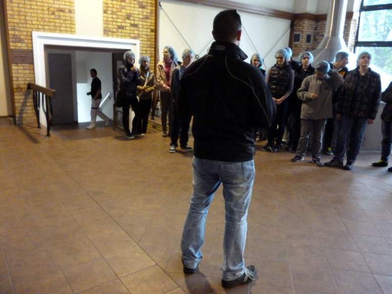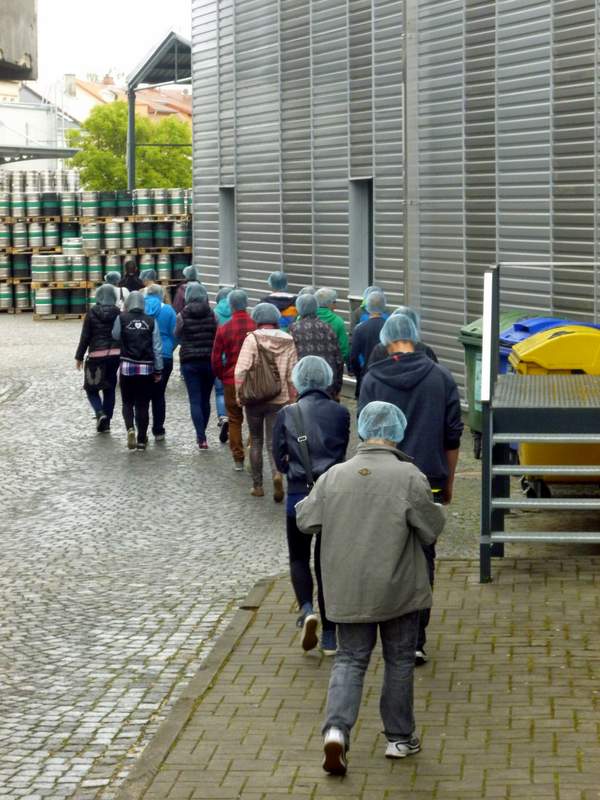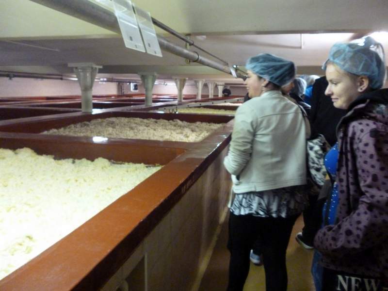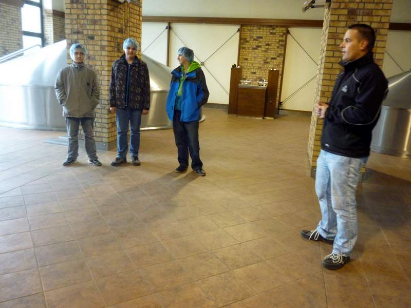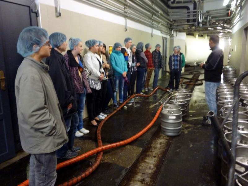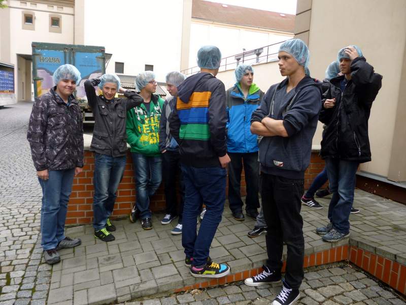 Konzumovat pivo ještě zdaleka nemůžeme, ale jak se vyrábí, to je zajímavé. Ve středu 14. května jsme se tedy my, deváťáci, vypravili do přerovského pivovaru Zubr. Hned za branou nás zarazilo, že na nádvoří nakládají kamiony s nápisem Holba a Litovel. Paní ředitelka nám tvrdila, že jde o kořistní kamiony, které po vzoru pirátů zajali na našich drsných silnicích zaměstnanci Zubra, ale protože se přitom šklebila, moc jsme jí nevěřili. Pak přišel pracovník pivovaru, aby nás provedl celým výrobním procesem. Vyložil nám, že Zubr spolu s dalšími dvěma pivovary tvoří skupinu PMS Přerov, a.s., odtud ty kamiony, a rozdal senzační modré čepičky. Kluci si je hned nasadili a fotili se, a holky reptaly, že si tu hrůzu na hlavu nikdy nedají. Daly, protože jinak by nemohly do pivovaru a prostor, kde se pivo vaří. Dozvěděli jsme se, z čeho a jak se zlatý nápoj dělá, ale nejlepší byla balírna, kde roboty balily sudy, plastové i skleněné lahve a připravovaly je k expedici. Úžasné bylo, že se vůbec nespletly a bezchybně vzaly celé skleněné balení a opak třeba dřevěnou paletu. Nejlepší bylo, že jsme si mohli vzít ty modré čepičky domů. deváťáci