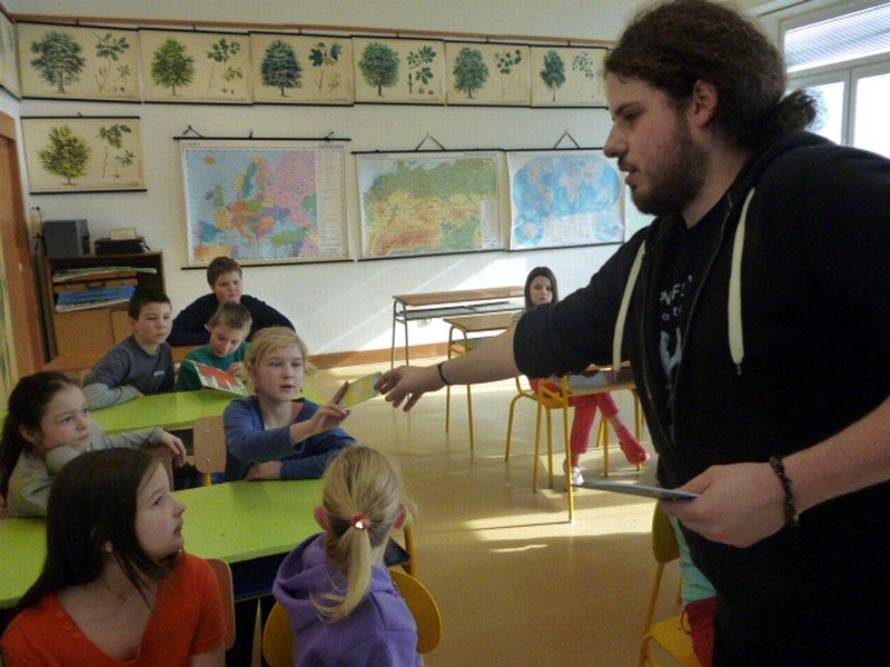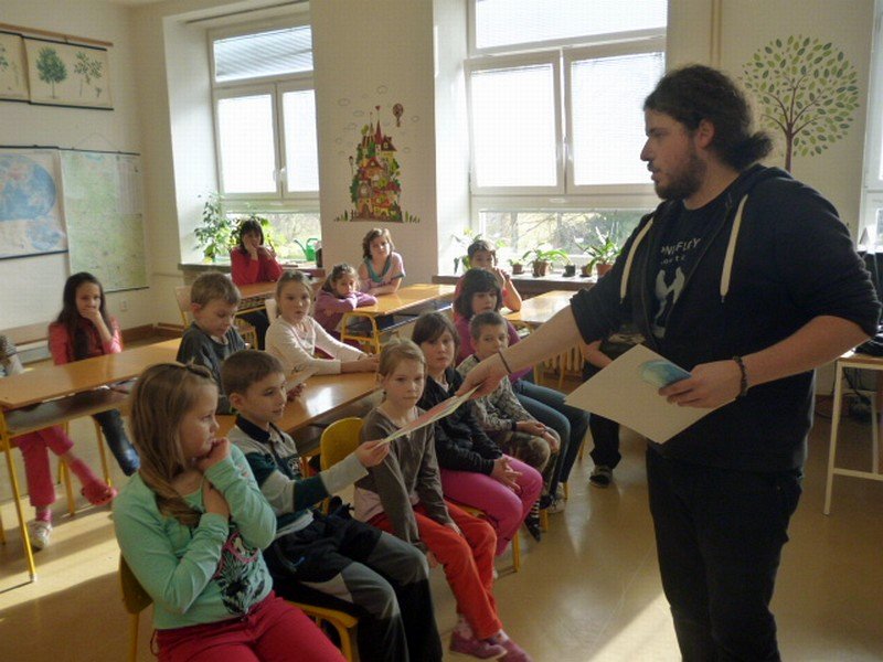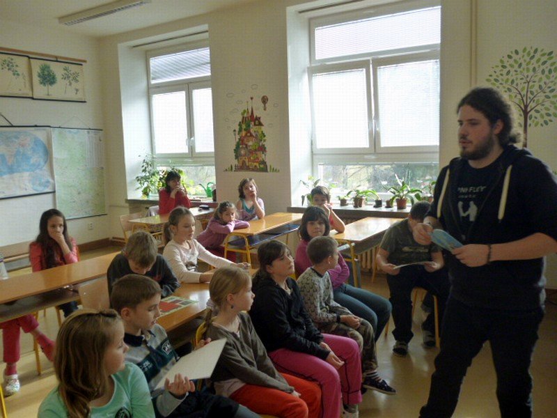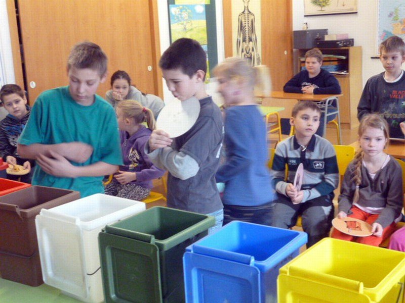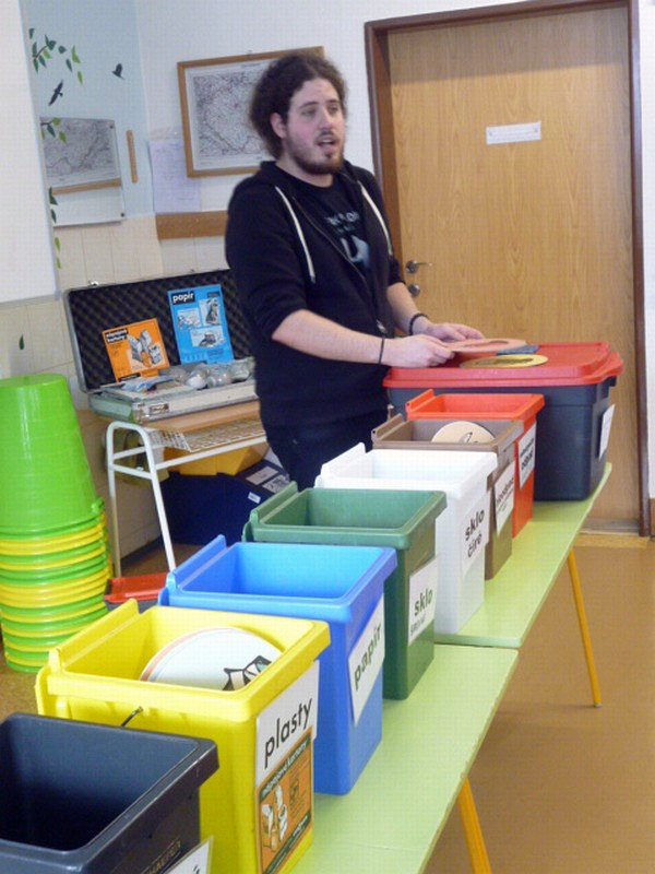 Je důležité recyklovat? O tom nás přesvědčil Tonda Obal. Přijel za námi až z Prahy, aby nám povídal o odpadech, jejich třídění, recyklaci a následném využití. Ukázal nám několik výrobků vyrobených právě z recyklovaných surovin – papíru, skla a plastů. Sami jsme si potom třídění do různobarevných popelnic vyzkoušeli.