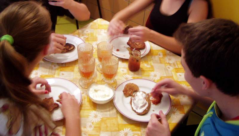 Ruština nám příliš nejde, zato bliny s kyselou smetanou, ty jo! Naučili jsme se taky, jak se připravuje a pije pravý ruský čaj a moc nám chutnalo. Dokonce jsme se pochlubili doma, ale když se nás maminky ptaly, jak se bliny dělají, pamatovali jsme si jenom, že byly moc dobré.