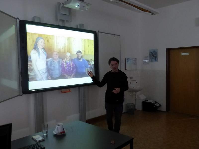 11. dubna jsme se měli možnost podívat na chvilku do východní Evropy, poznat krásy Turecka, Ruska a Gruzie. Cestu nám zprostředkoval mladý muž – cyklista, pan Tomáš Vejmola. V jeho projekci byly zahrnuty fotky, videa, vtipné i poučné historky a ke konci zbyl prostor i na diskuzi. Inspirací pro žáky bylo i to, že Tomáš získal všechny své zážitky díky svému bicyklu, který se stal jeho věrným kamarádem i dopravním prostředkem při všech objevitelských cestách.