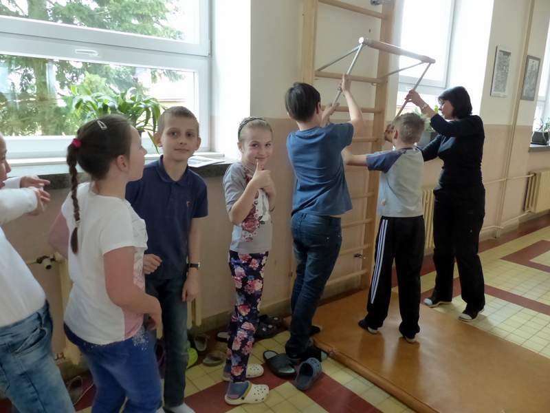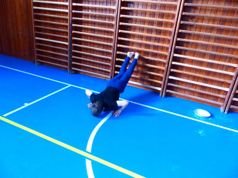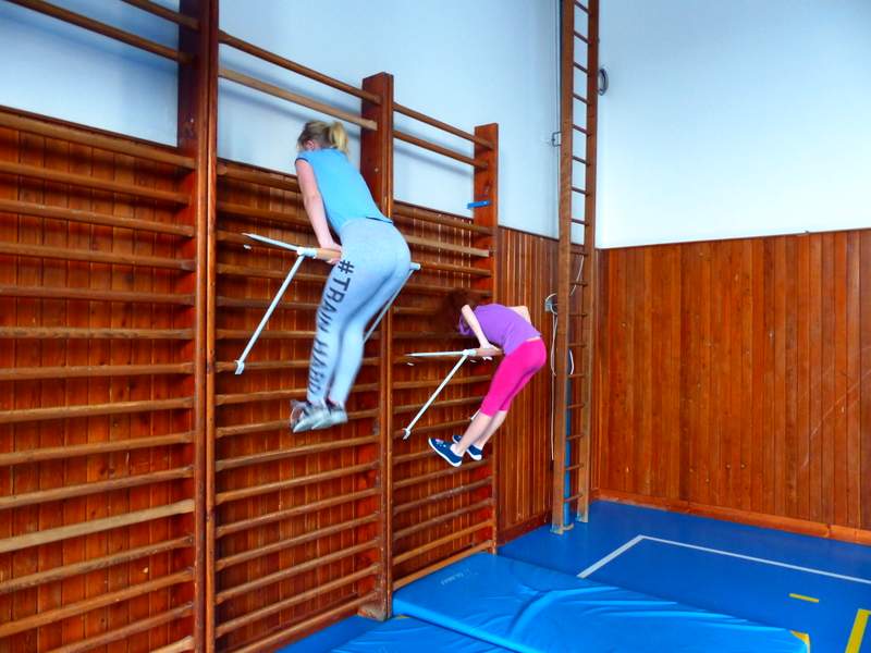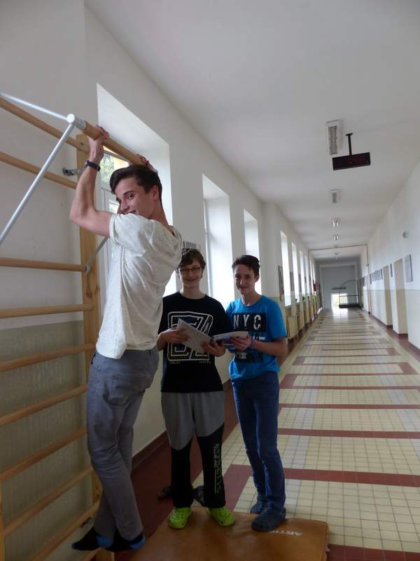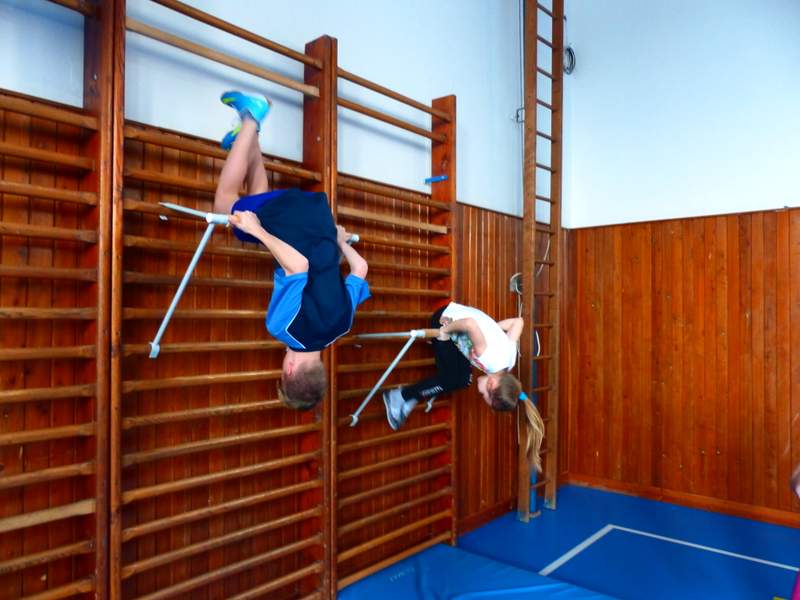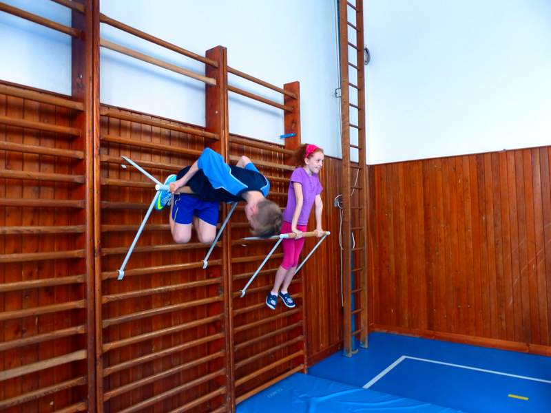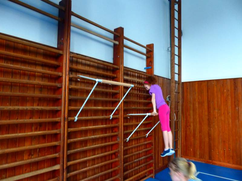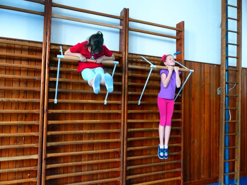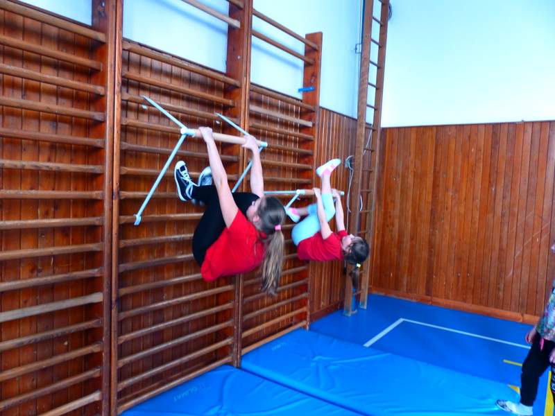 Přestávky s gymnastikou Díky panu Němečkovi ze Zlína, který věnoval naší škole 5000 Kč, jsme na školní chodby pořídili žebřiny s přídavnou hrazdou. Žáci mají o přestávkách možnost protáhnout svá těla a rozvíjet sílu a obratnost. A že cvičí. Stěžují si, že se jim na rukou loupe kůže. Udržují si tím své mozoly při cvičení shybů, svisů, vznesů a průvleků. Doufáme, že jim zájem vydrží a gymnastika už nebude pro mnohé strašákem. Zájmový kroužek Gymnastika