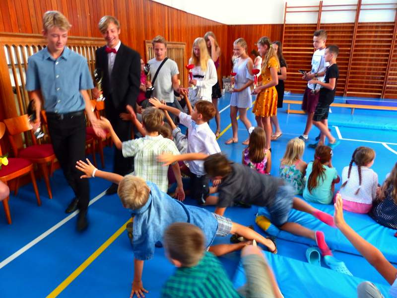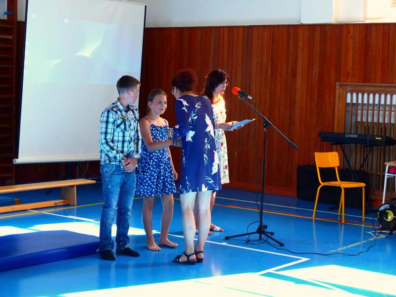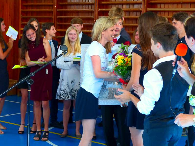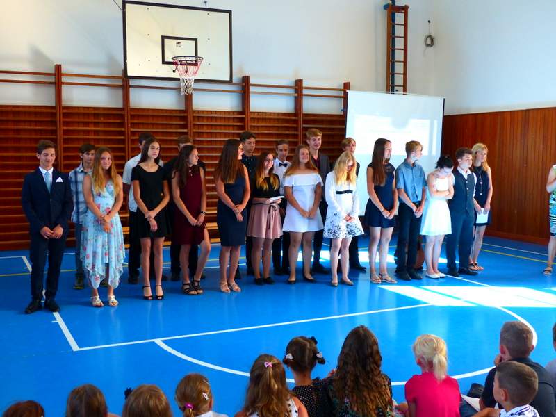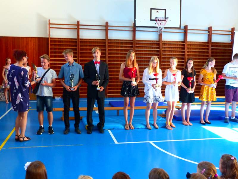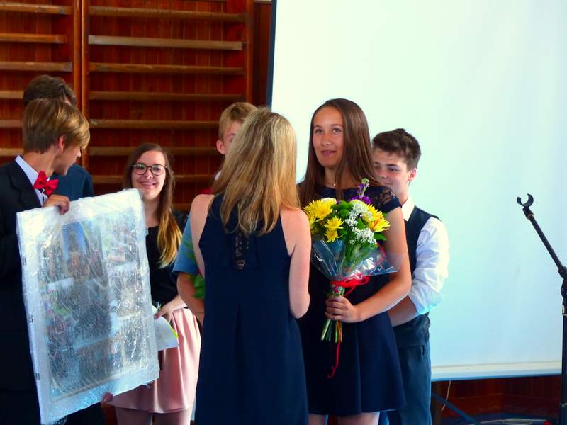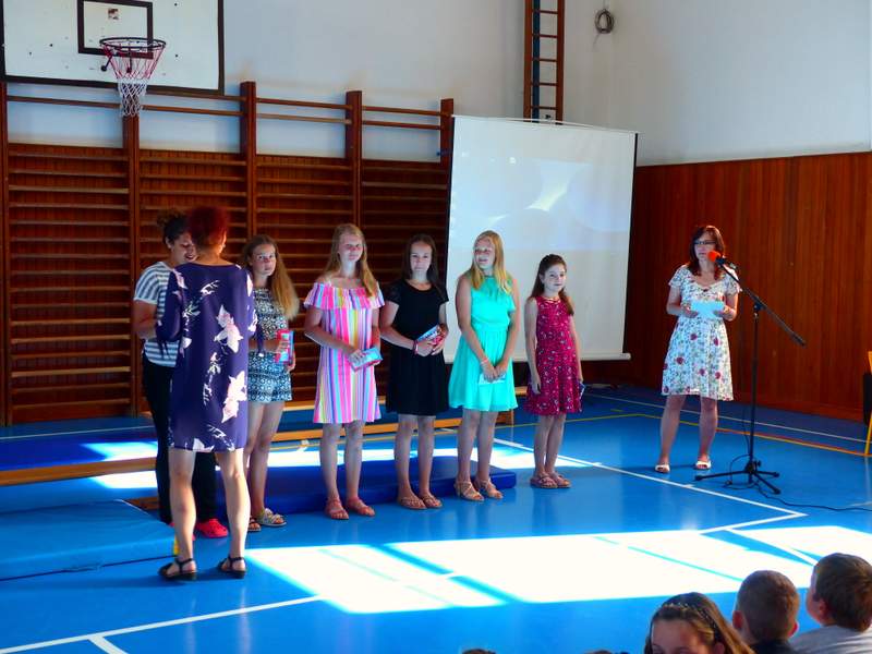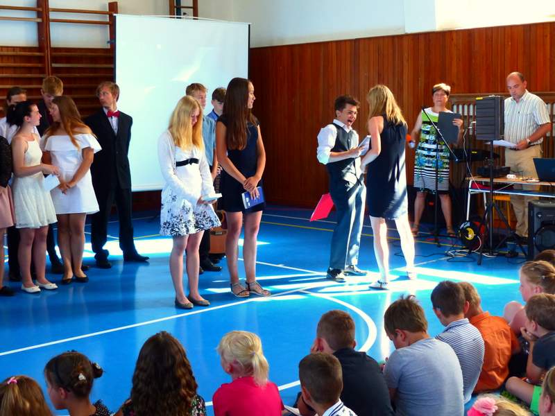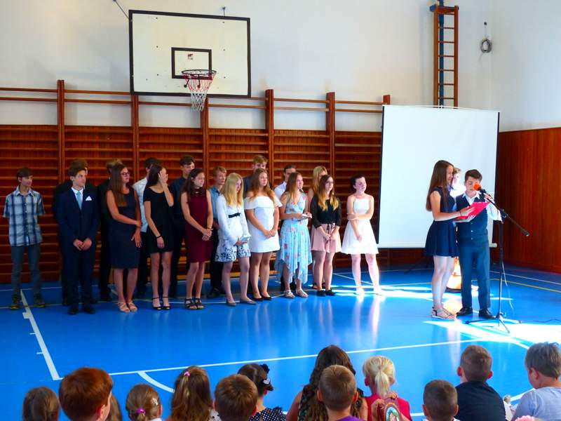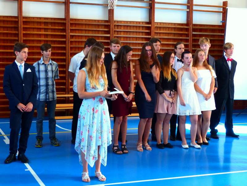 Ocenění úspěšných žáků a rozloučení s děváťáky Poděkování děváťáků učitelskému sboru