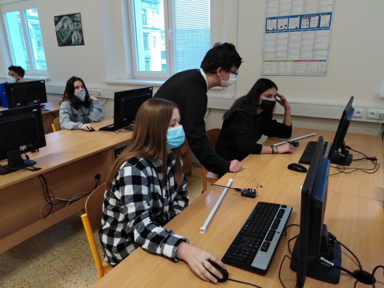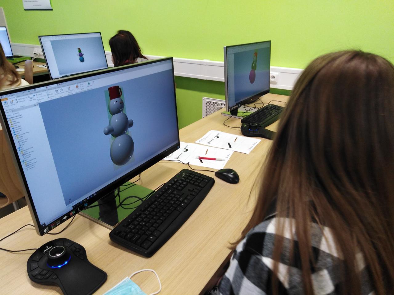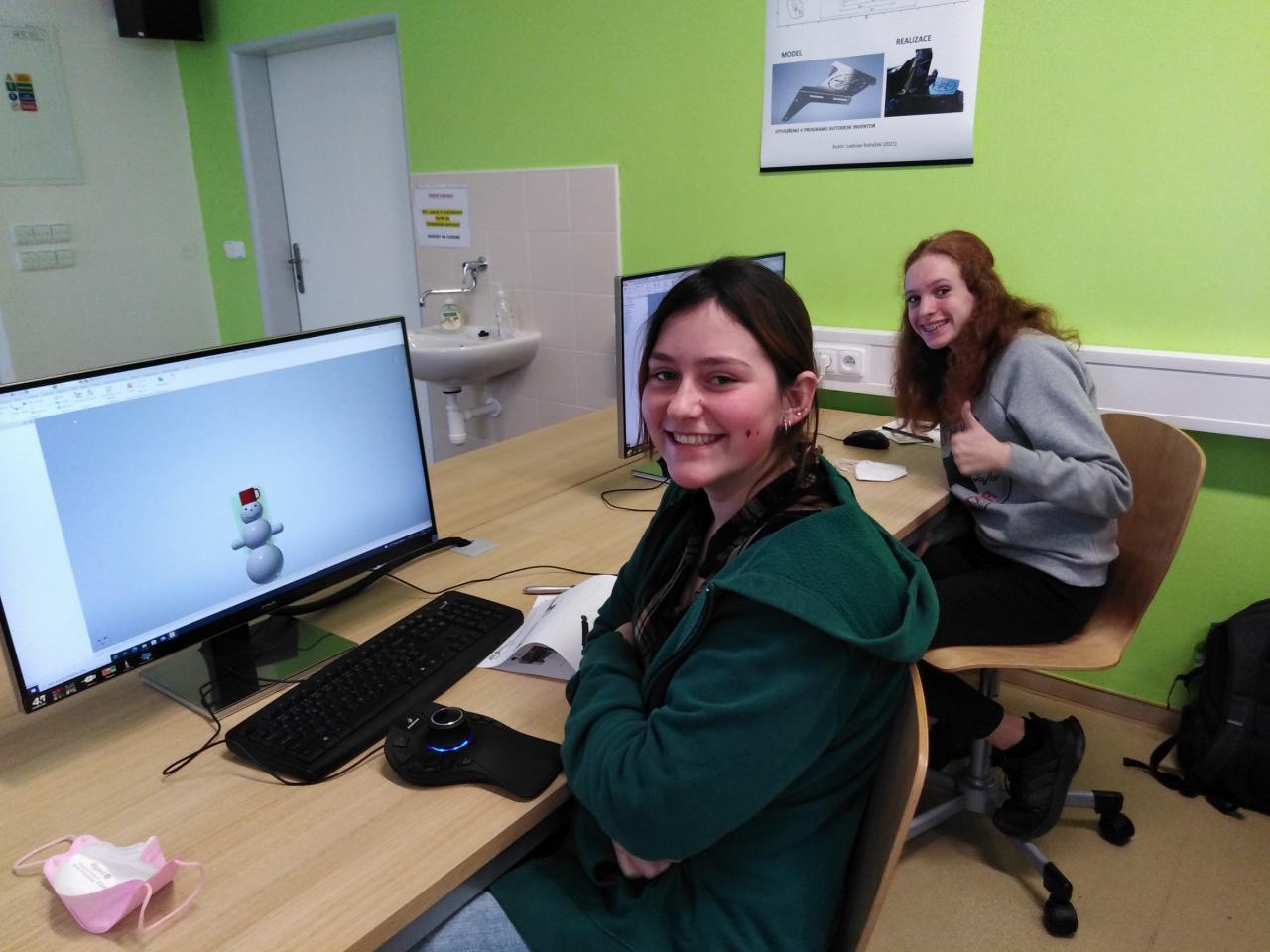 Na návštěvu průmky se vždycky moc těšíme. Dokonce tak moc, že sem někteří chodí pravidelně na technické kroužky a dost si to užívají. Nejsou to totiž návštěvy jako u tetičky v neděli, ale vždycky se dozvíme něco nového a hned si vyzkoušíme, jak to funguje. V úterý 7. prosince jsme si vyzkoušeli, jak se programují legoroboti v Arduino UNO a prohnali naprogramovaná autíčka závodní dráhou, zkusili jsme modelovat v Inventoru a sledovali, jak obráběcí stroj podle programu přesně vykrouží z hliníkového bloku kovovou hračku. Naši sněhuláčci, které jsme nakreslili na obrazovace, sice nebyli sněhobílí, ale následkem našich her takoví spíš psychosněhuláčci, ale nám se moc líbili a zimní ulice by určitě rozveselili.