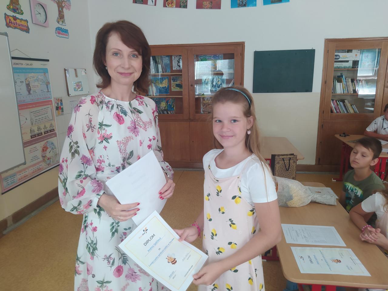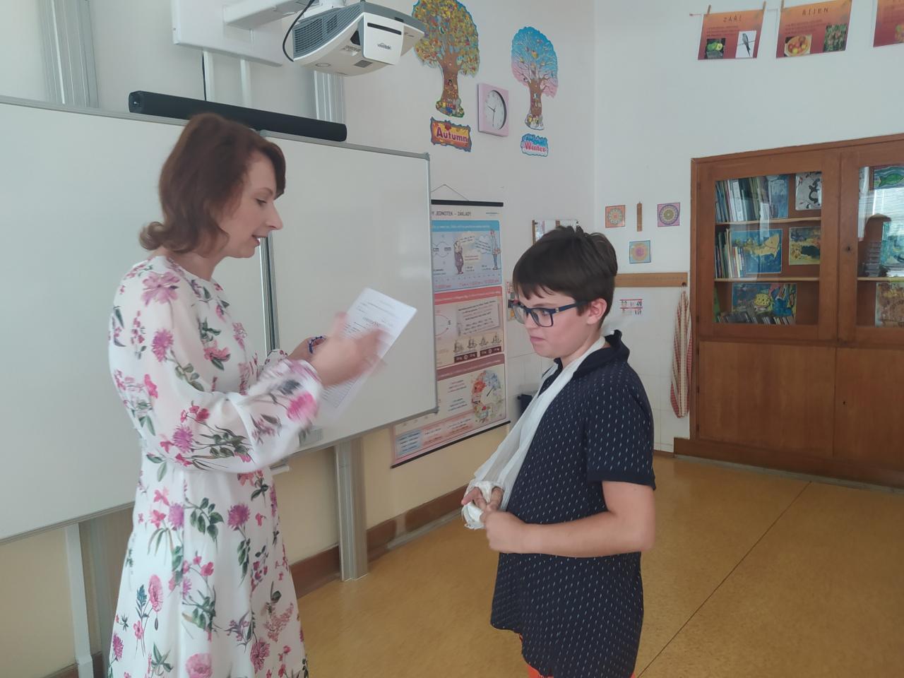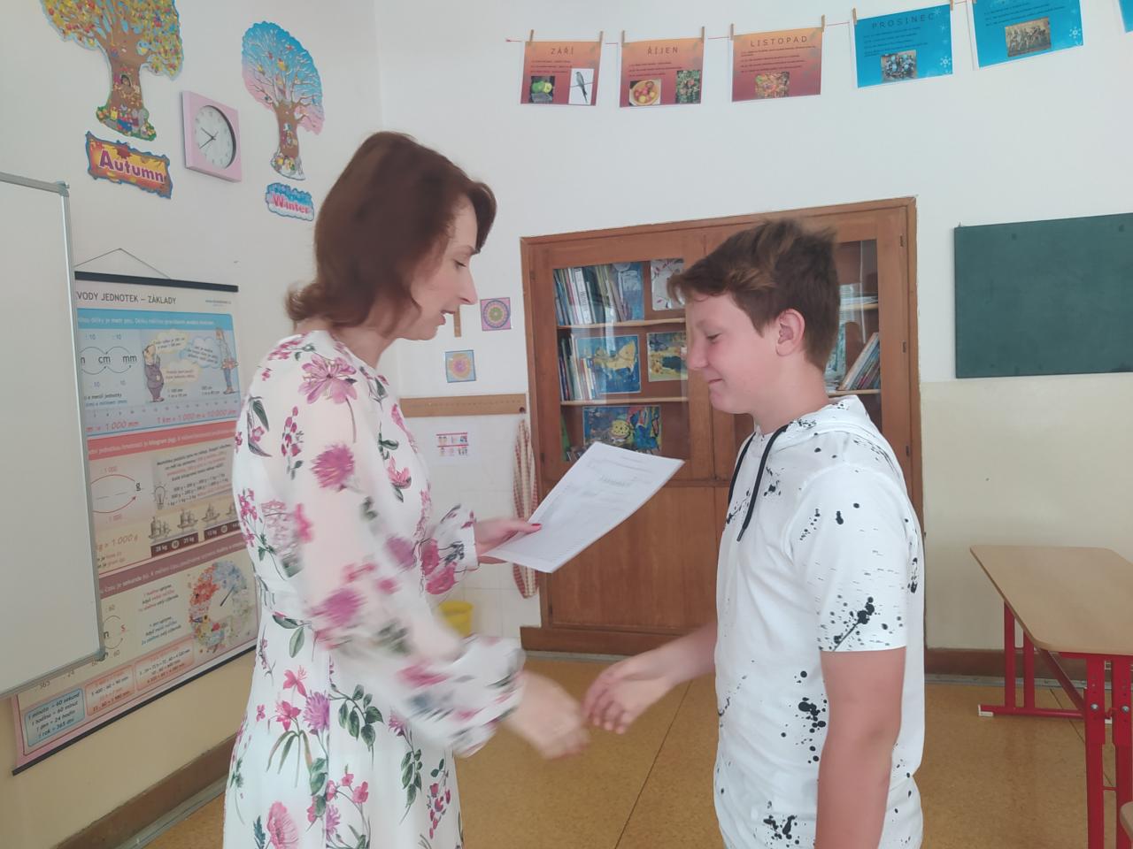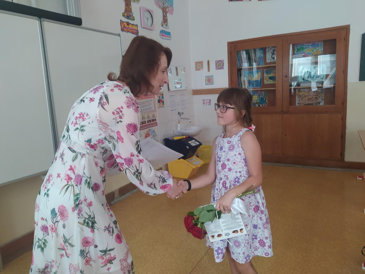 Rozdávání vysvědčení a poděkování paní učitelce