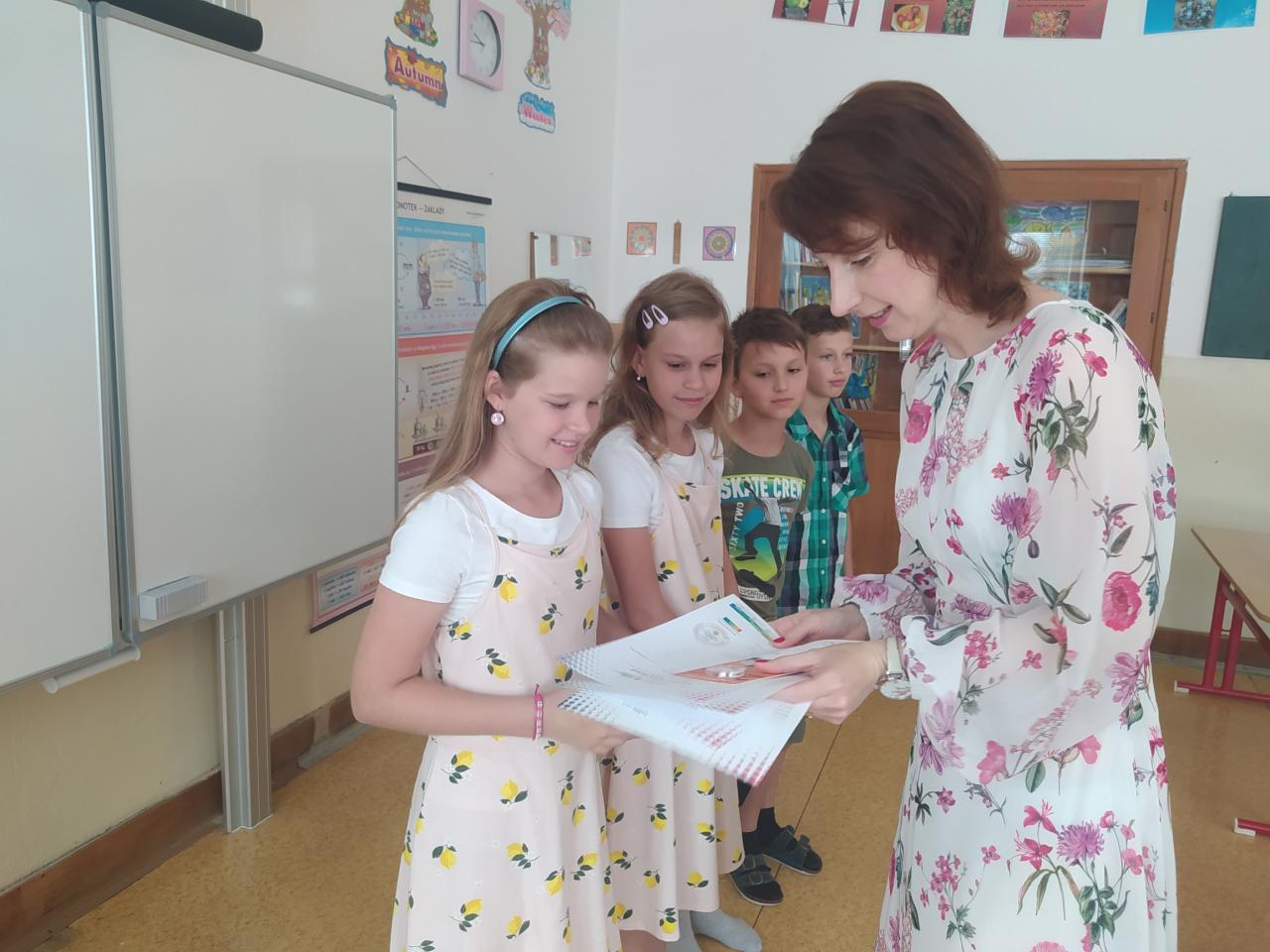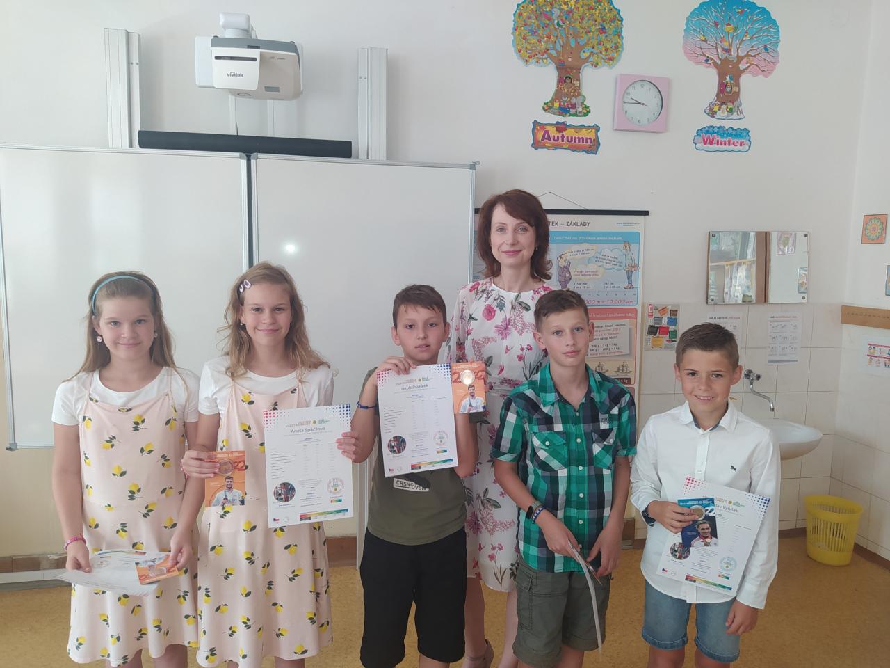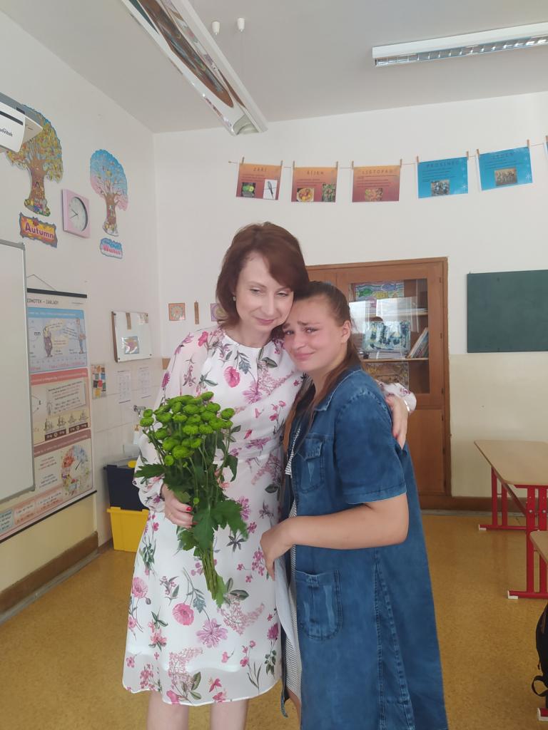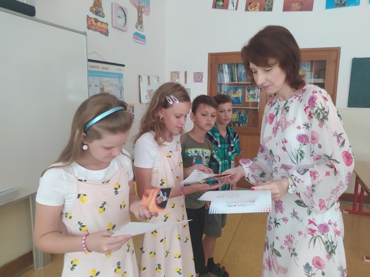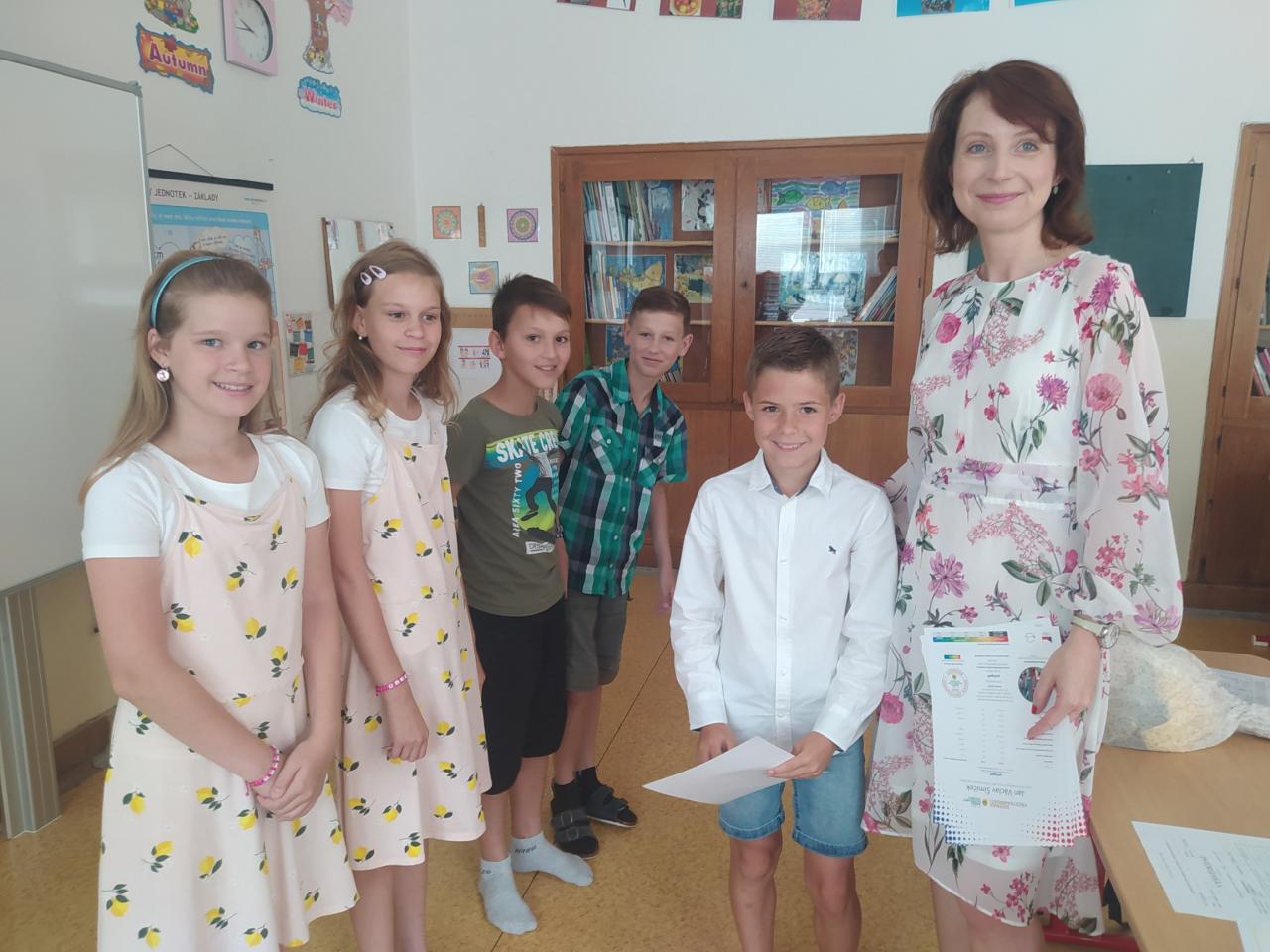 Rozdávání vysvědčení a poděkování paní učitelce