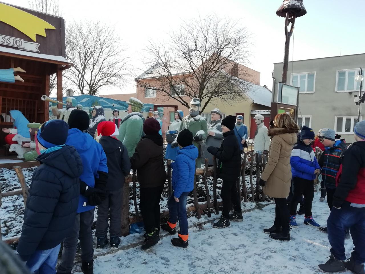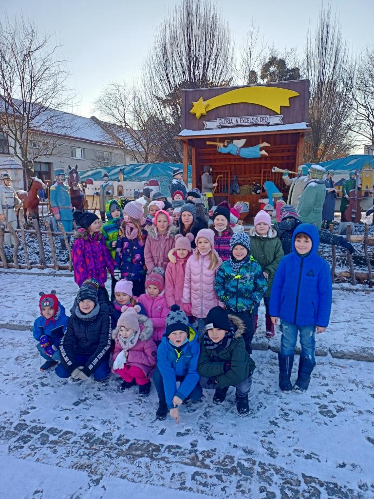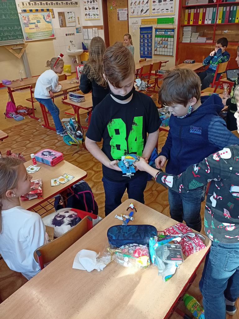 Poslední den před vánočními prázdninami si žáci zpříjemnili vycházkou k betlému. Prohlédli si také výstavku betlémů v kostele sv.Havla. Cestou se zastavili ve školní zahradě, aby doplnili ptačí krmítka. Nakonec si rozbalili dárečky pod školním vánočním stromečkem.