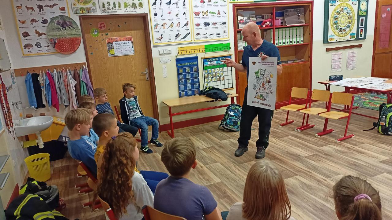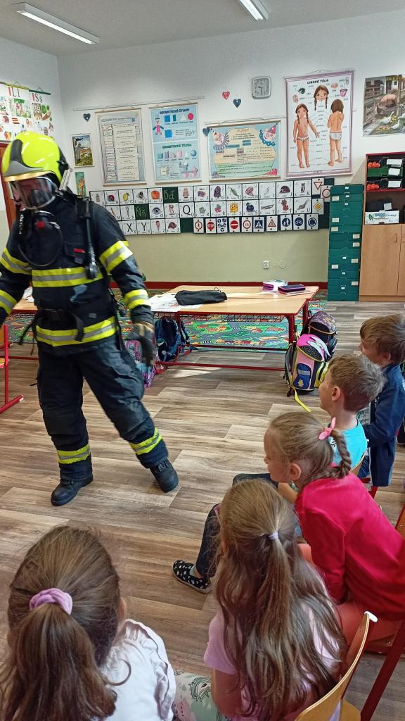 Velmi poutavým způsobem se žáci z 2. třídy dověděli zajímavosti z činnosti hasičů.