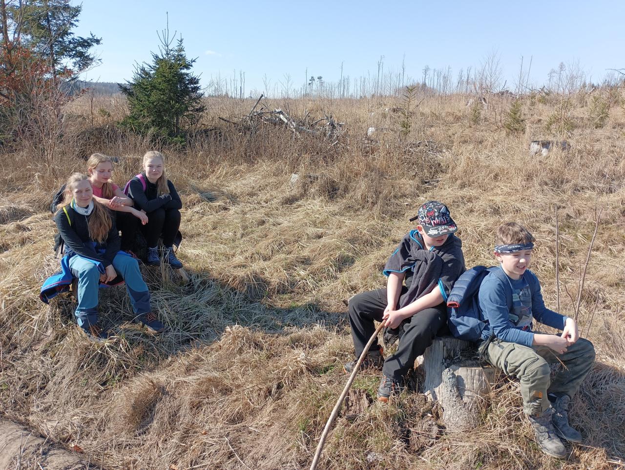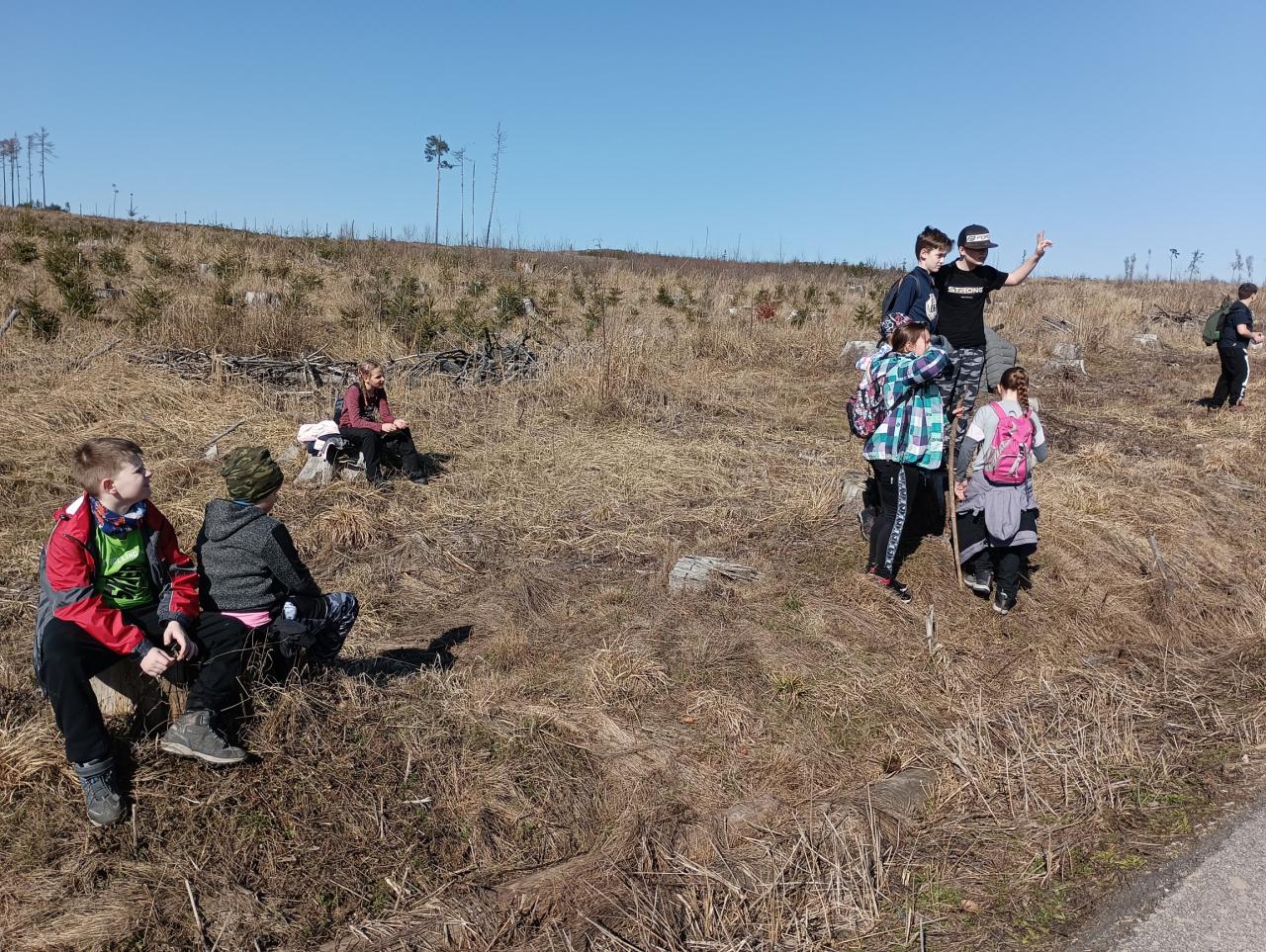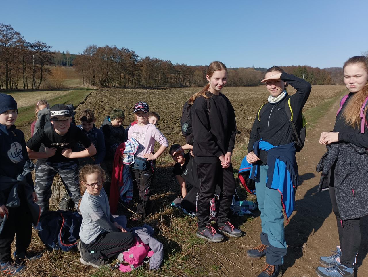 První den na škole v přírodě se náramně vydařil. Cestou na Chaloupky bylo tak teplo, že jsme postupně odkládali vrstvy oblečení a nakonec šli jen v mikině. Po dobrém obědě a odpočinku jsme se pustili do průzkumu okolí, večer si společně zahráli hry a znavení celodenními zážitky usnuli jak dudci.