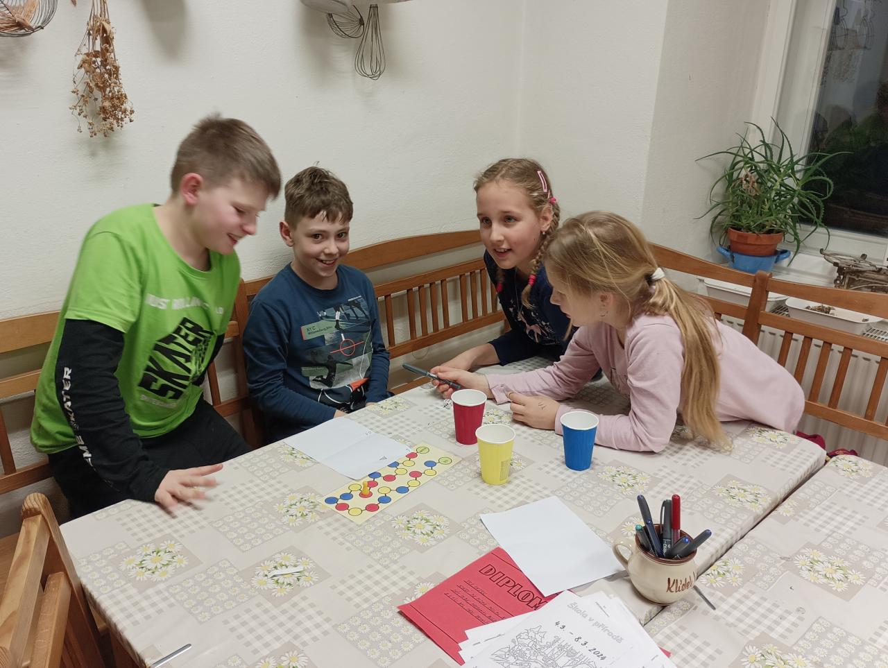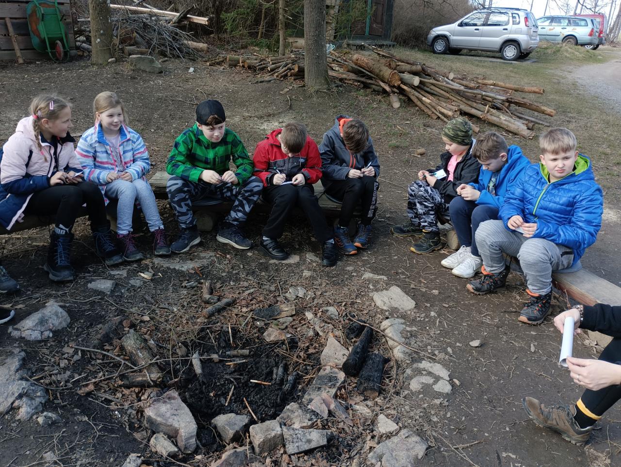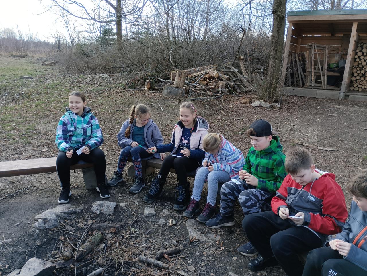 První den na škole v přírodě se náramně vydařil. Cestou na Chaloupky bylo tak teplo, že jsme postupně odkládali vrstvy oblečení a nakonec šli jen v mikině. Po dobrém obědě a odpočinku jsme se pustili do průzkumu okolí, večer si společně zahráli hry a znavení celodenními zážitky usnuli jak dudci.