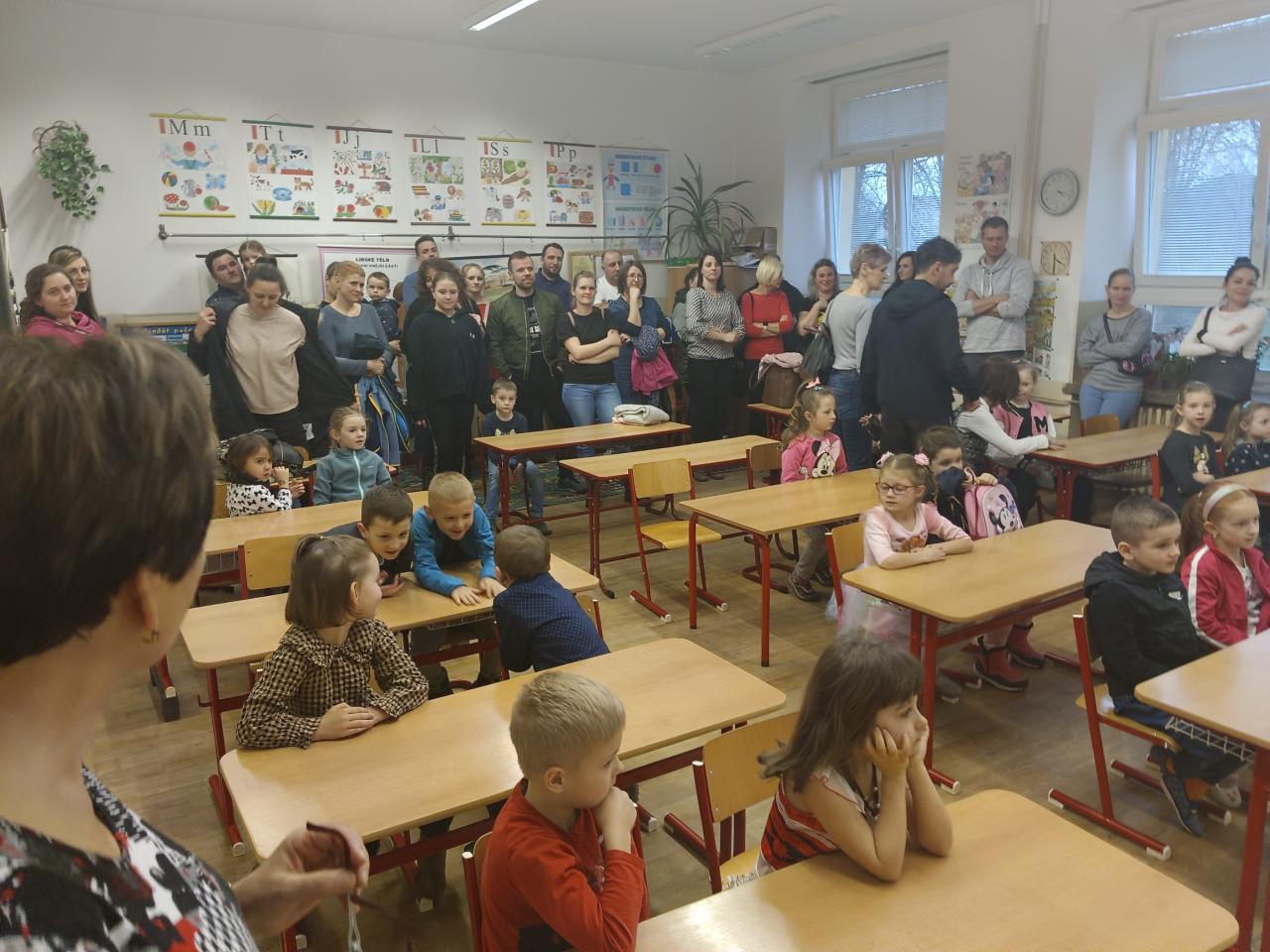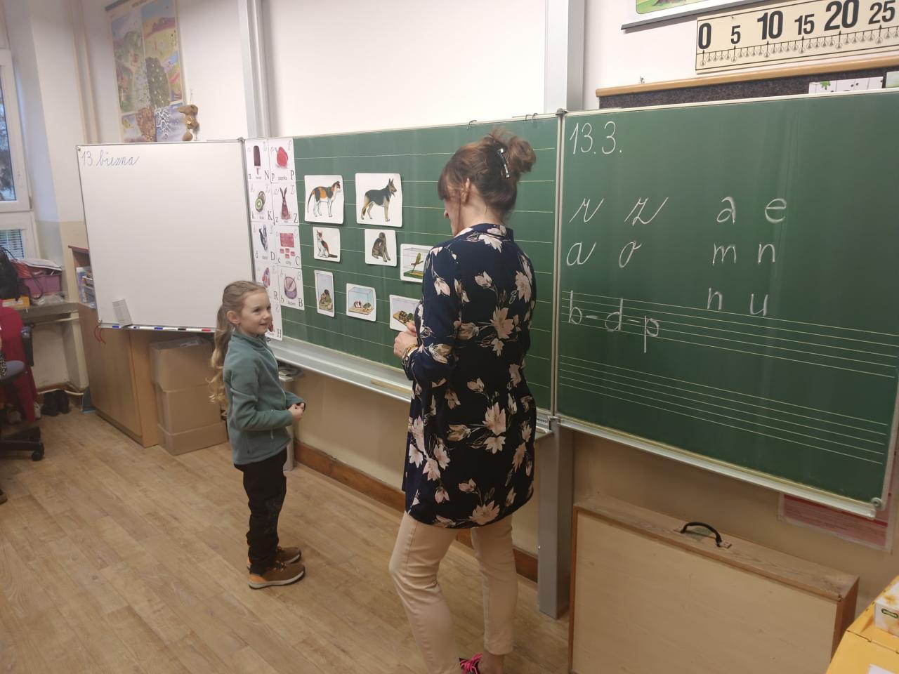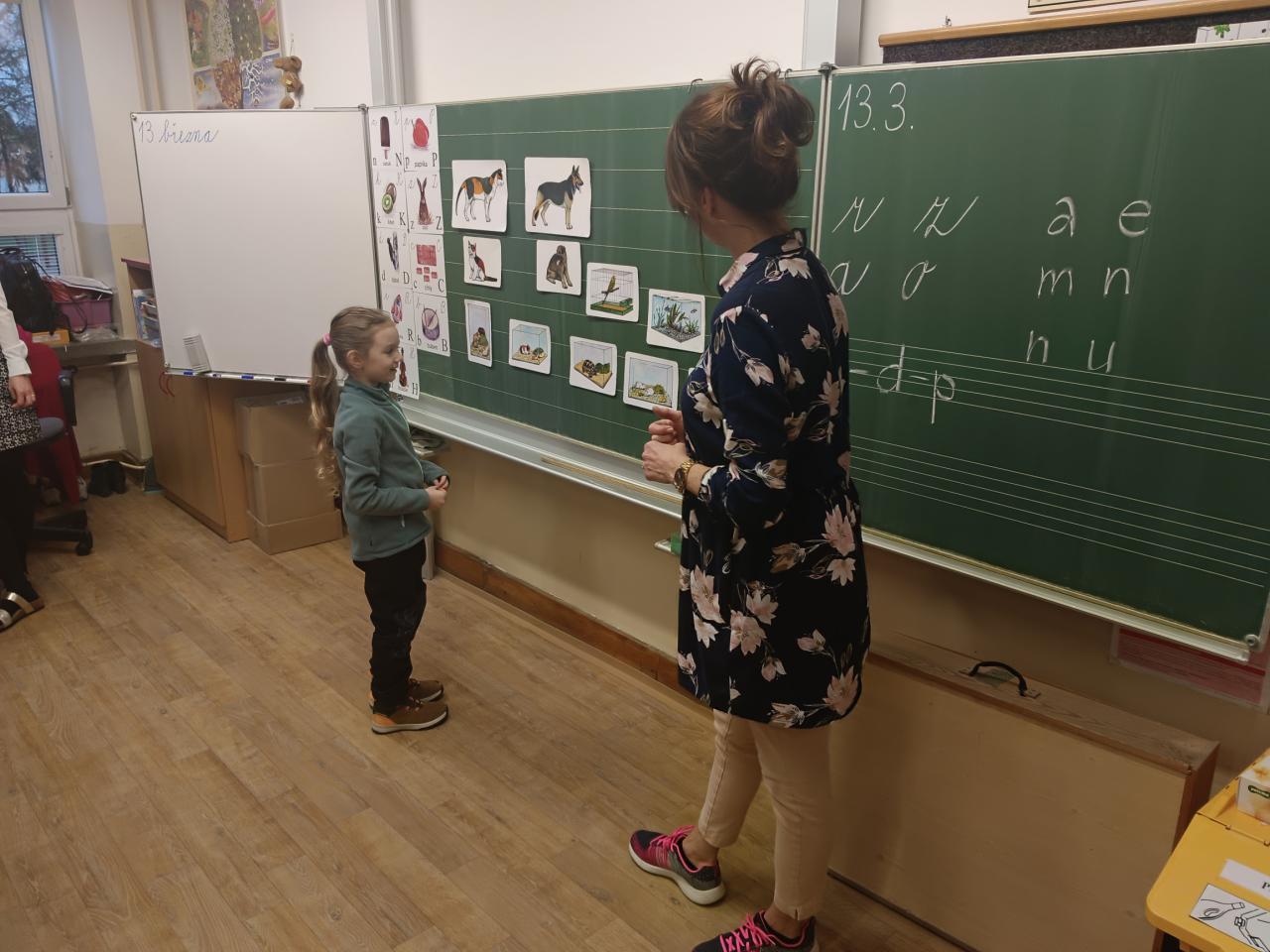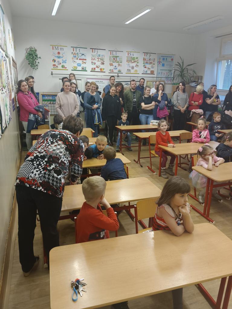 Budoucí prvňáčci se přišli se svými rodiči podívat do školy a vyzkoušeli si, jak to u nás chodí.