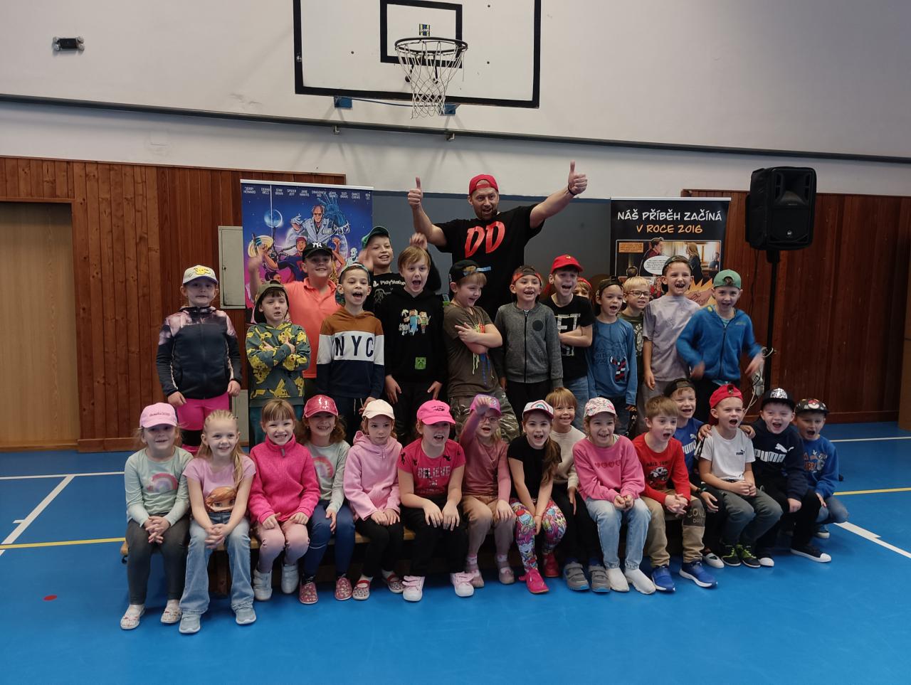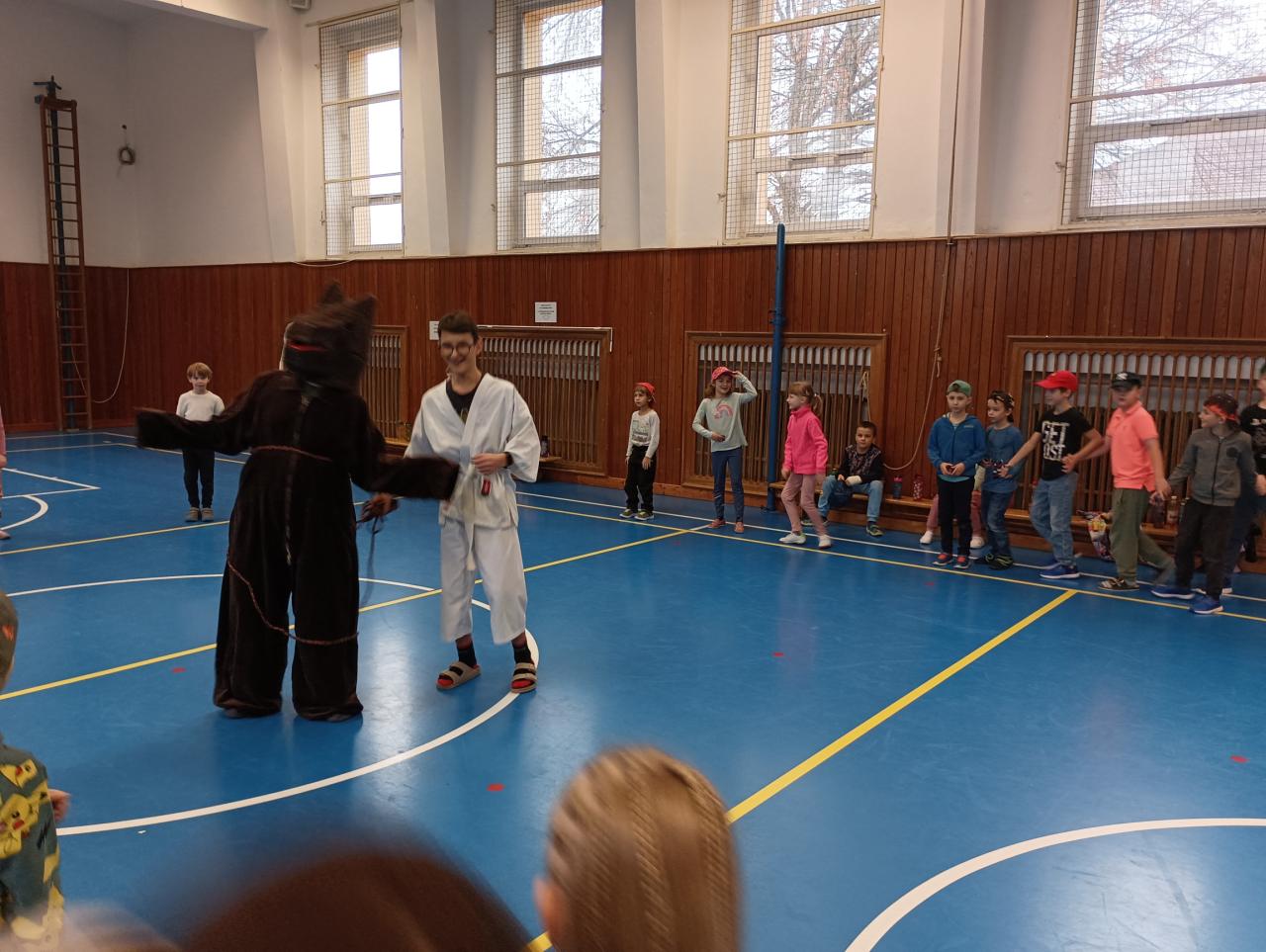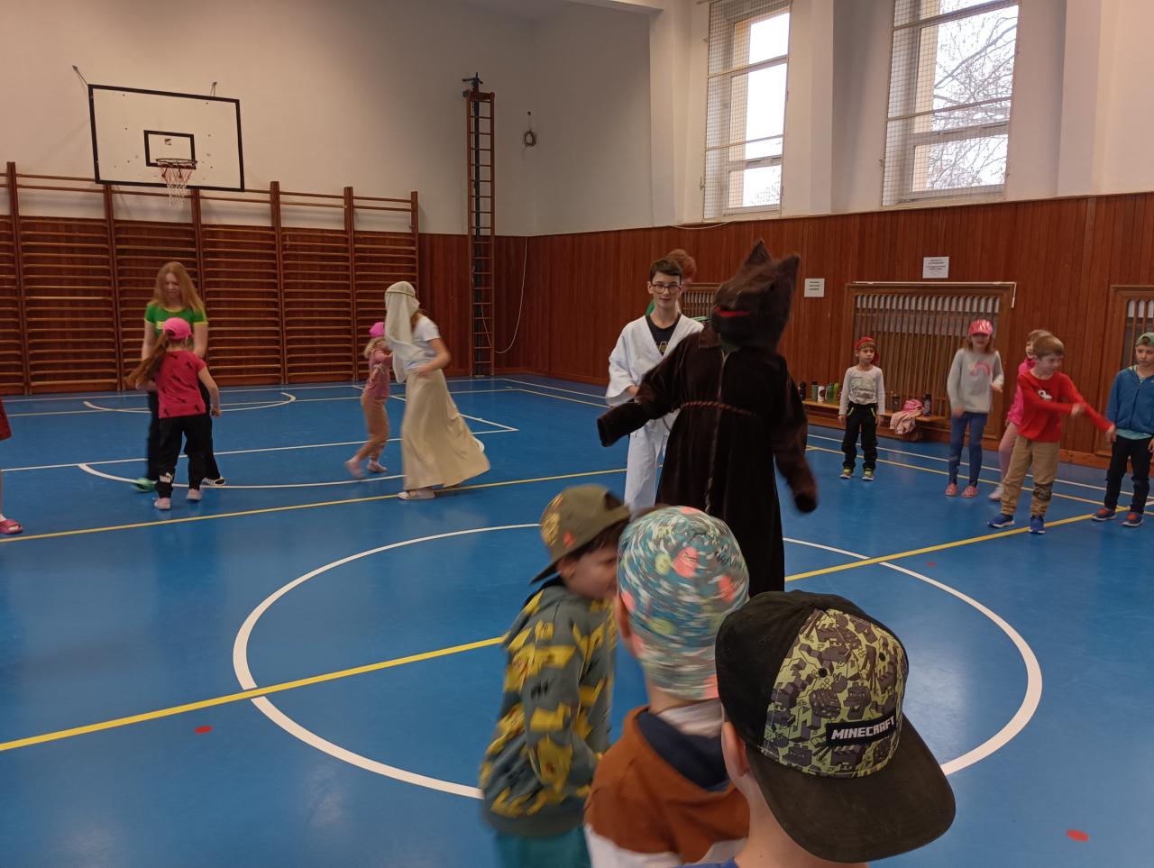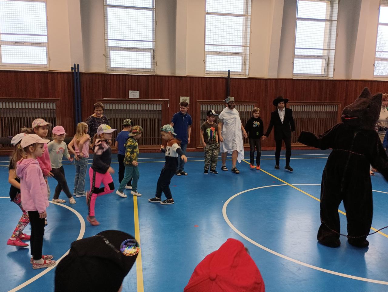 V pátek 9. února navštívil naši školu Doctor dancer a žáci 1. stupně si s ním užili taneční dopoledne plné zábavy a pohybu. Veselí bylo znásobeno i masopustní taškařicí v podání našich osmáků. Medvěd byl tak přesvědčivý, že někteří prvňáčci pro jistotu odmítli jeho pozvání k tanci. Co kdyby..., že?
