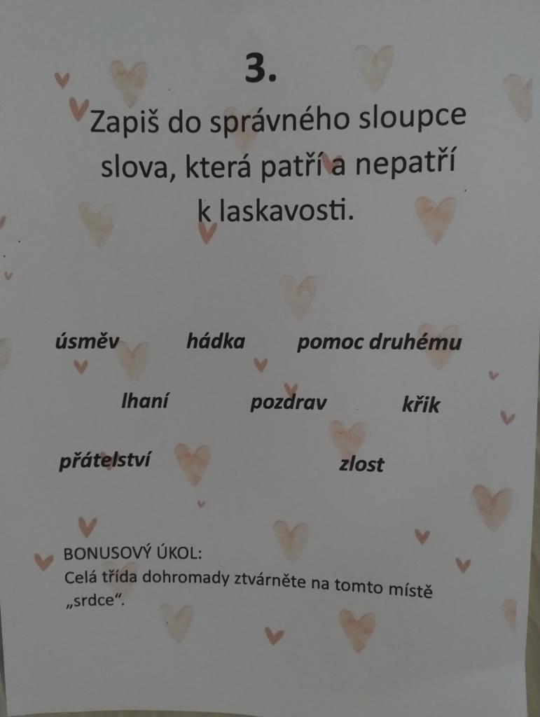 Ten s láskou upekly děti ze školního parlamentu a děti z 2. oddělení ŠD. Po celý den jsme se snažili používat slovo „laskavě/laskavý“ a být k sobě opravdu laskaví. O velké přestávce čekala na všechny ještě „Stezka laskavosti“ na chodbách školy, která pobavila, inspirovala a připomněla, jak důležité je dělat malé dobré skutky.