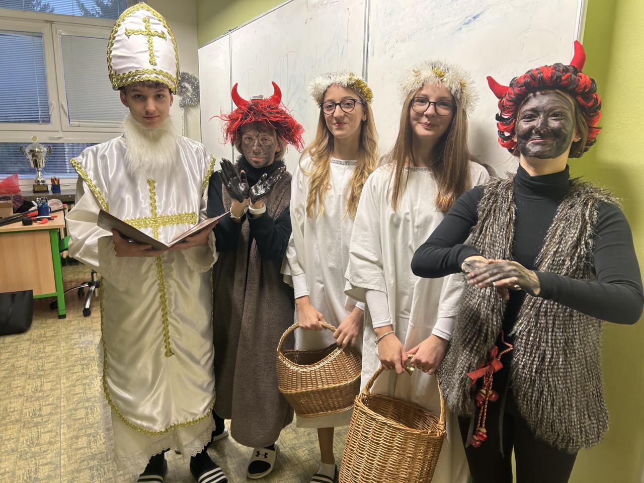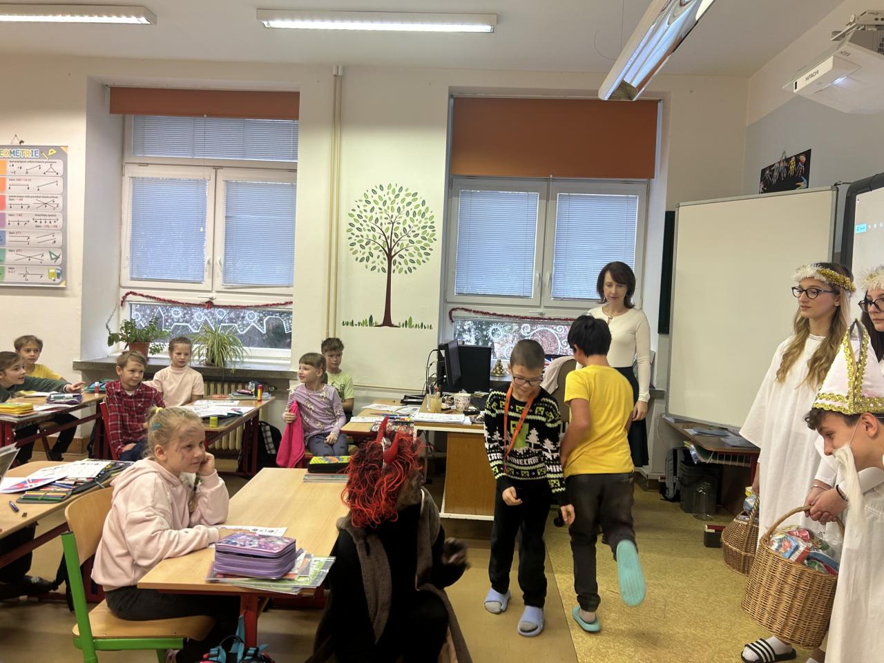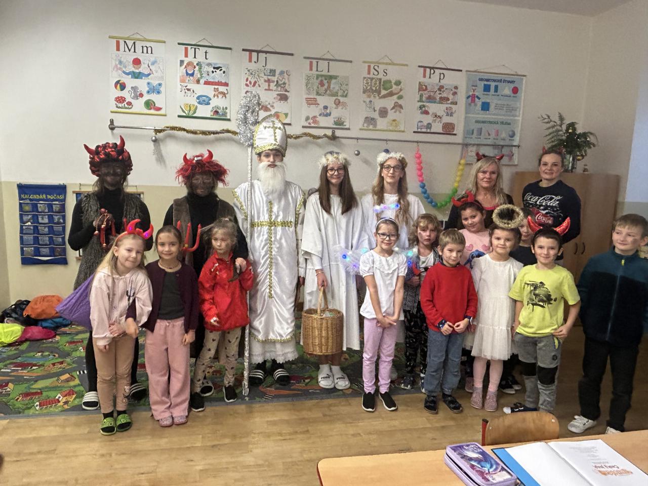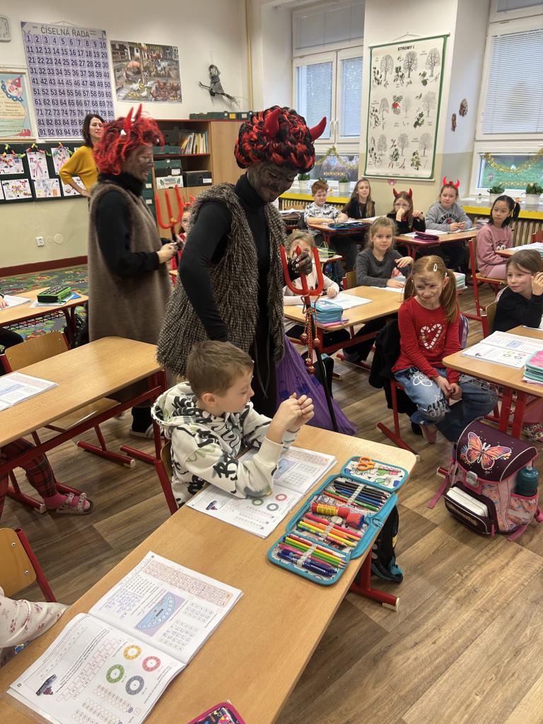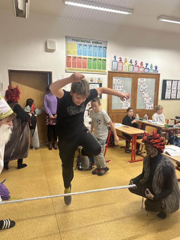 V pátek 5.12. chodil školou Mikuláš i se svou družinou andělů a čertů. Hodné děti odměnil laskavým slovem, pochvalou a dobrotkami. Ti, co měli na duši nějaký ten hřích, museli přeskočit berlu a slíbit, že do příštího roku své chování napraví. Co myslíte? Podaří se jim to? Uvidíme...