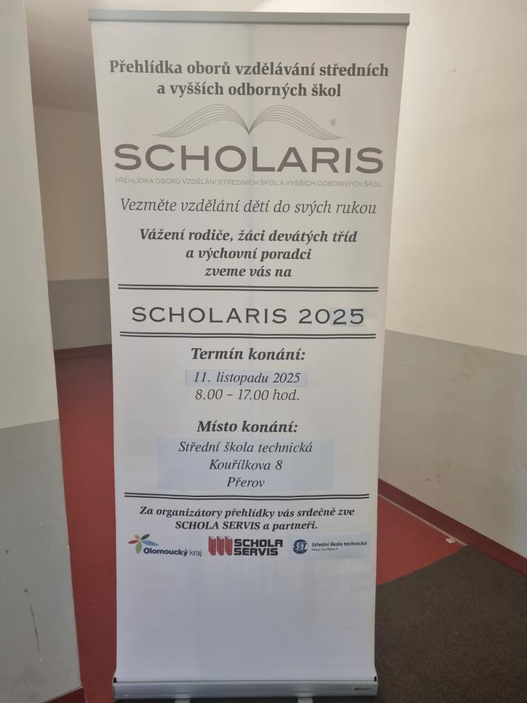 Dne 11. listopadu jsme se žáky 9. třídy navštívili v Přerově akci Scholaris 2025, která se uskutečnila na SŠT Kouřilkova. Zde prezentovali SŠ své obory a žáci se o všech mohli blíže informovat. Současně se na SŠT konal i den otevřených dveří a tedy si mohli žáci prohlédnout i zázemí školy.