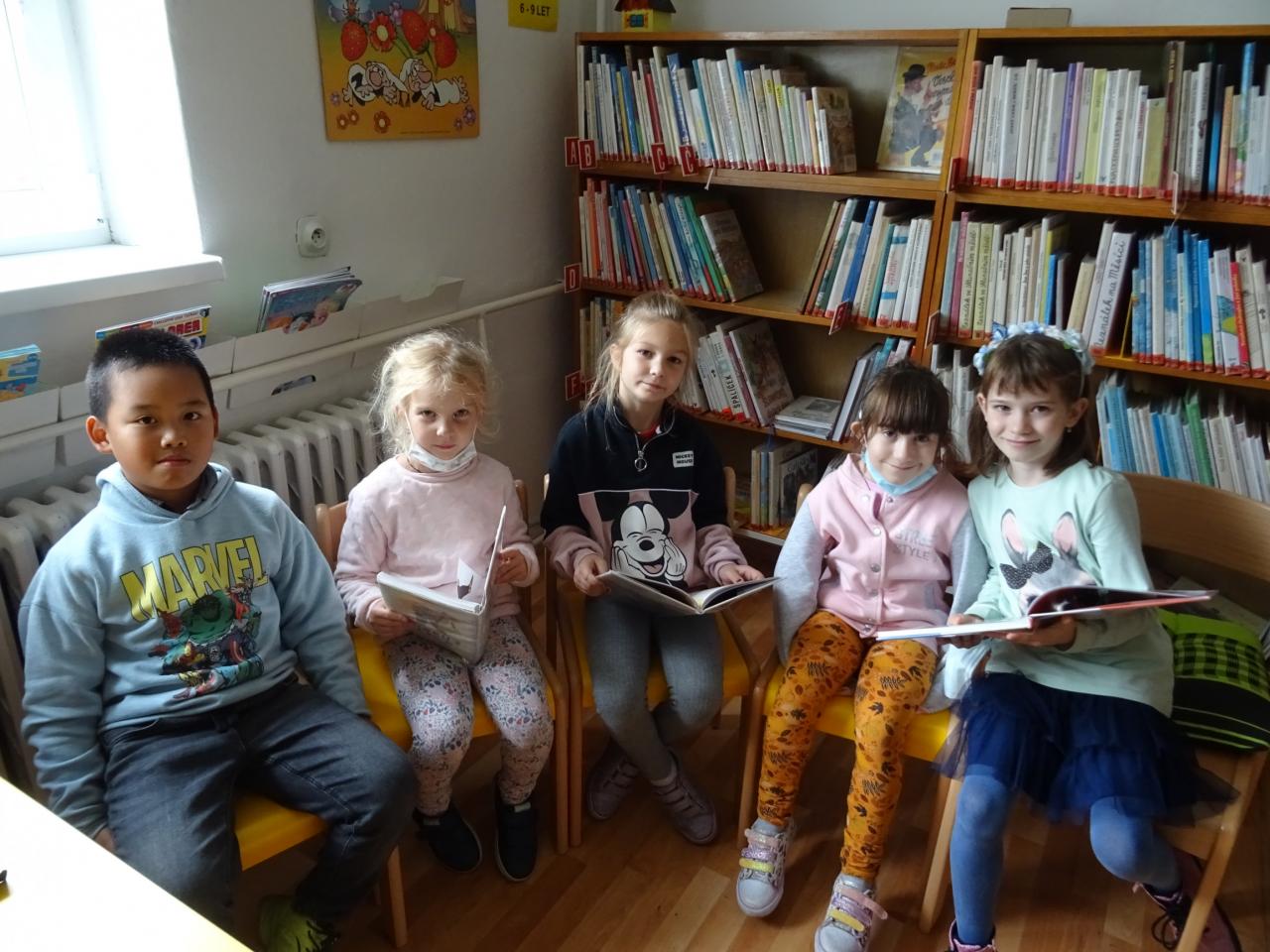 V pátek 15. října jsme navštívili obecní knihovnu v Dřevohosticích. Přivítala nás knihovnice - paní Valčíková. Seznámila nás s prostředím knihovny, s pravidly půjčování knih a s péčí o knihy. Všichni jsme se na chvíli přenesli do světa pohádek. Děti z oddělení Berušek s vychovatelkou Komoňovou