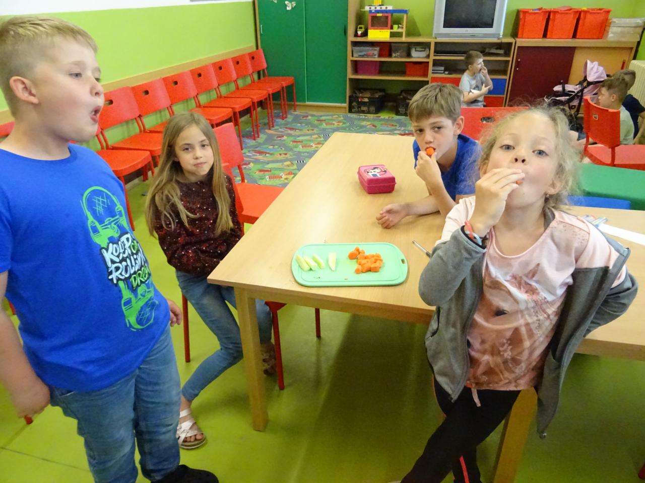 V týdnu od 6. do 10. 6. proběhl ve školní družině Týden se zeleninou a ovocem. Děti sestavovaly jídelní lístek, hrály hry, třídily potraviny, řešily, jak předcházet nemocem, ztvárňovaly bacil dle vlastní fantazie.