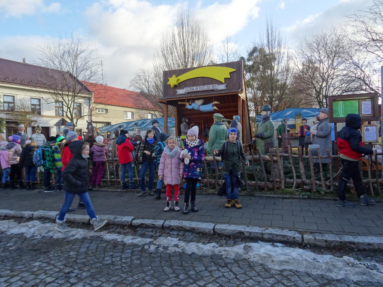 V pátek 17. 12. šly děti ze školní družiny na procházku na náměstí Dřevohostic, kde si prohlédly betlém a připomněly historii jeho vzniku.