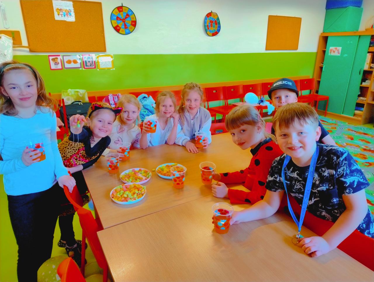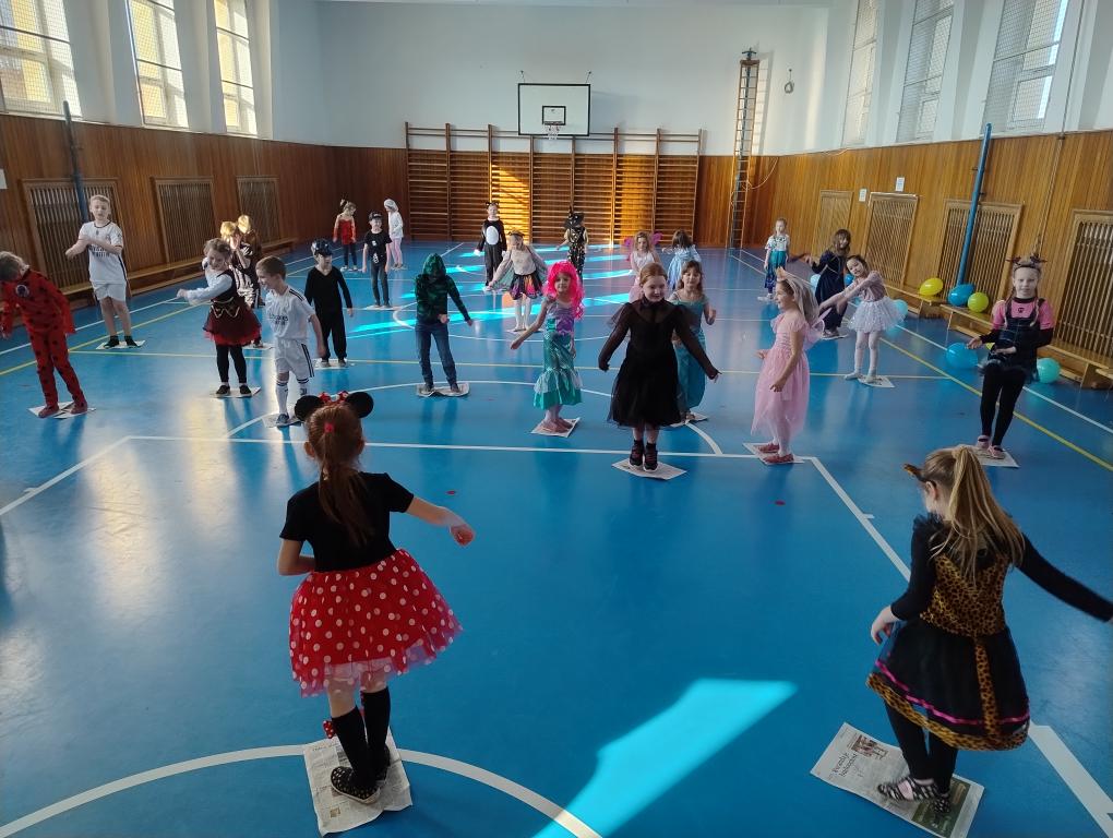 Obléci kostýmy, nachystat zábavu pro děti a hurá karneval začíná. Tanec na hudbu a k tomu zapojit hlavičky při počítání kamarádů. Udržet balónek co nejdéle ve vzduchu. Nebo třeba vydržet stát na co nejmenším kousku novin. Prasknout balónek přivázaný k tělu, teda to byla výzva, hlavně pro naše uši .