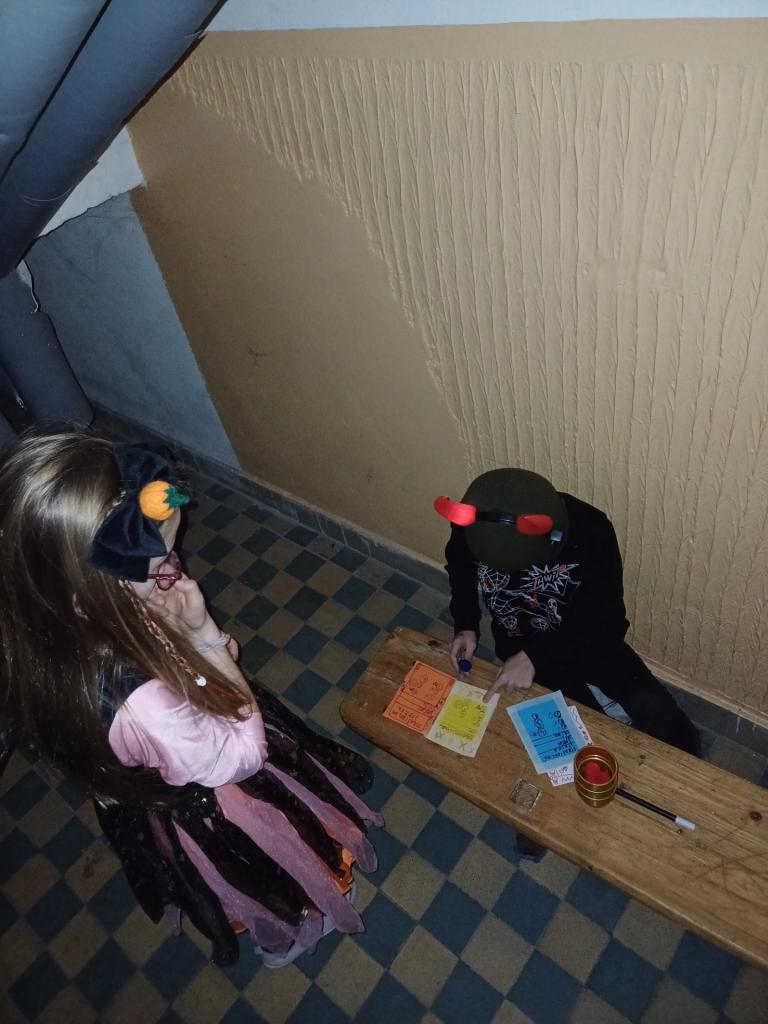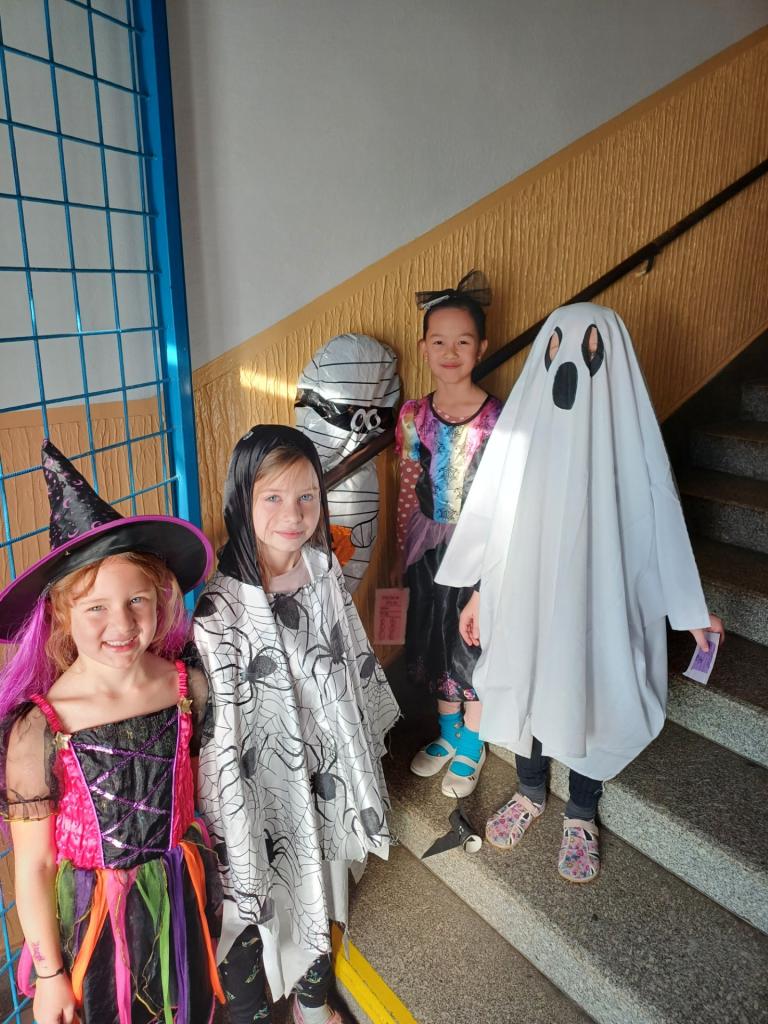 Děti ze ŠD 3 se celou tuto dobu pečlivě připravovaly na zorganizování strašidelné stezky pro mladší děti v ŠD 2 a ŠD 1. Pečlivě chystaly svá stanoviště s úkoly, kouzly a odměnami. V pátek 15. listopadu se to pak odpoledne v suterénu školy jen hemžilo maskami malých strašidel, čarodějnic a různých dalších bytostí. Děti si akci užily a na závěr to roztančily na diskotéce.