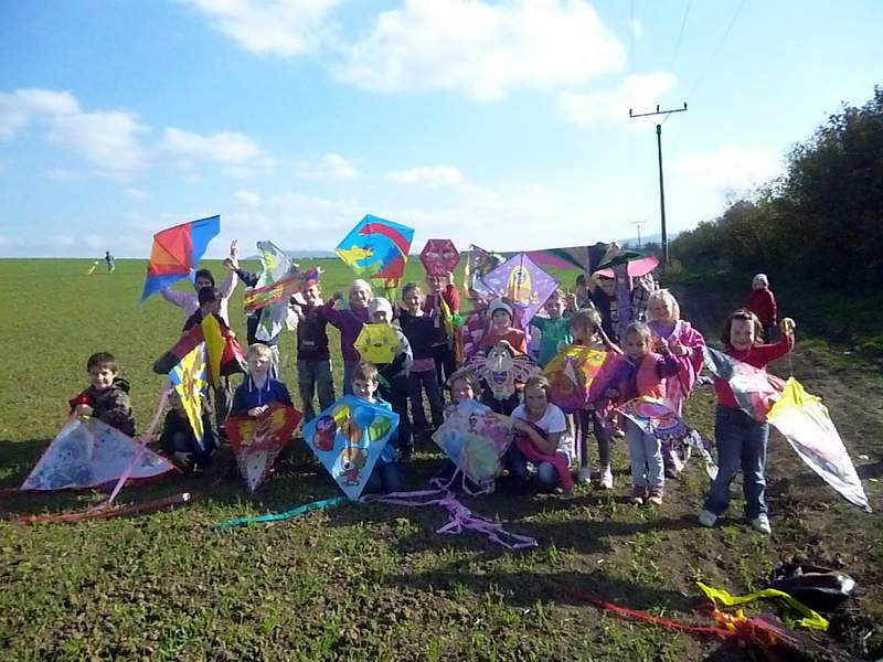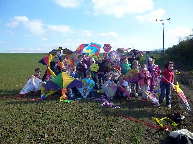 Ve středu 23. září jsme v naší družině uspořádali tradiční "Drakiádu". Děti si nosily své draky z domu, ale dlouhou dobu jsme museli čekat na pořádný vítr. Ve středu jsme se konečně dočkali a vyrazili jsme na kopec za školu. Děti vypustily své velké, malé, pohádkové, látkové a umělohmotné draky. Za chvilku se to na nebi hemžilo barevnými skvrnkami dráčků. Někomu vzlétl drak opravdu vysoko, jinému se tak nedařilo, ale všichni jsme si při drakiádě užili spoustu legrace!