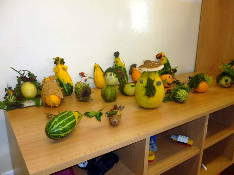 S přicházejícím podzimem jsme si ve školní družině vyrobili skřítky "Podzimníčky". Děti si z domu přinesly spoustu přírodního materiálu – dýně, listí, mech, šišky, bukvice - a podzimní odpoledne mohlo začít. Nejprve si děti zahrály hru „Ježek“ a naučily se k ní podzimní básničku. Potom si poslechly pohádku o skřítcích Spadlístkovi a Malovánkovi. Nakonec se všichni s chutí pustili do výroby podzimních skřítků. Fantazii se meze nekladly a za chvíli se to v družině hemžilo roztodivnými postavičkami skřítků. Každý skřítek dostal své jméno a všechny jsme je umístili na výstavku, kde je děti pyšně ukazovaly rodičům.