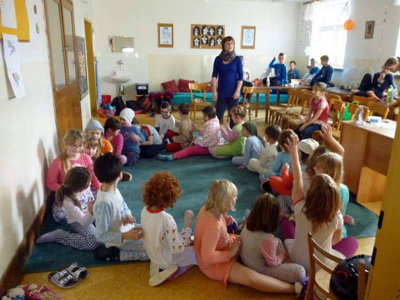 Ve středu 5. února se v naší školní družině konal „Pyžamový bál“. Děti si oblékly pyžámka, noční košilky, noční čepičky a nazuly si legrační papuče. Nechyběly ani legrační účesy. Když byli všichni připraveni ve svých nočních úborech, bál mohl začít! Společně jsme si zahrávali spoustu zábavných her, zasoutěžili jsme si a zatancovali tanečky se svými plyšáky. Nechybělo ani občerstvení, které si děti přinesly z domu. Při pyžamovém bálu jsme si všichni užili spoustu legrace a všechny děti odcházely domů s úsměvem.