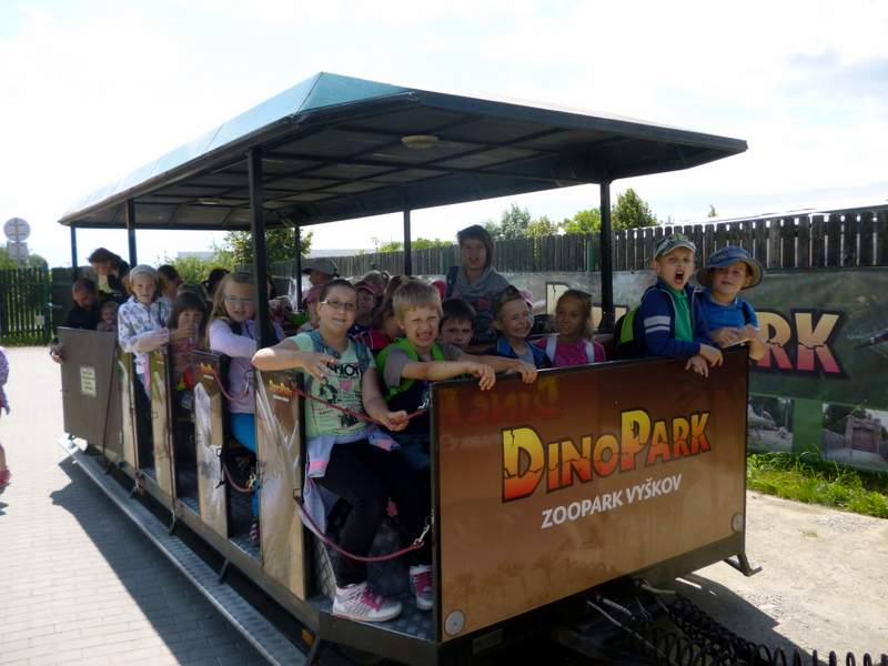 Ve středu 17. června jsme se vydali na družinový výlet do DinoParku ve Vyškově. Nejprve nás Dino vláček zavezl do dinosauřího světa, kde se děti seznámily s různými druhy dinosaurů, na které si mohly i sáhnout, a které vydávaly strašidelné zvuky. Ve 4D kině jsme viděli film DinoAquarium a u stánečků nakoupili dinosauří suvenýry. Potom nás vláček zavezl do malé zoo, kde jsme si prohlédli několik druhů zvířátek. Děti si také pohrály na dinosauřím hřišti, daly si zmrzlinu a na závěr nakoupily dárečky pro sebe i své blízké. Výlet se nám všem moc líbil a těšíme se, co pro nás paní vychovatelky vymyslí příště!