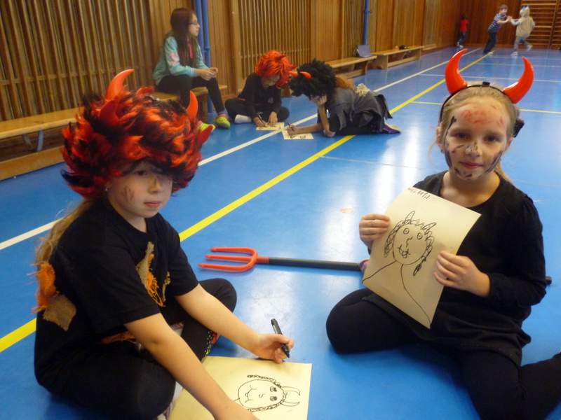 Dne 7. 12. se to v tělocvičně hemžilo čerty a čerticemi z čertí družiny. Čertí odpoledne mohlo začít. Hráli jsme čertí hry a soutěže. Tancovali jsme čertí tanec, malovali čerty, zpívali písně a recitovali básně o čertech. Na závěr byl z každého oddělení vylosovaný "Miss čert". Slibujeme, že se polepšíme a čertů už se nebojíme.