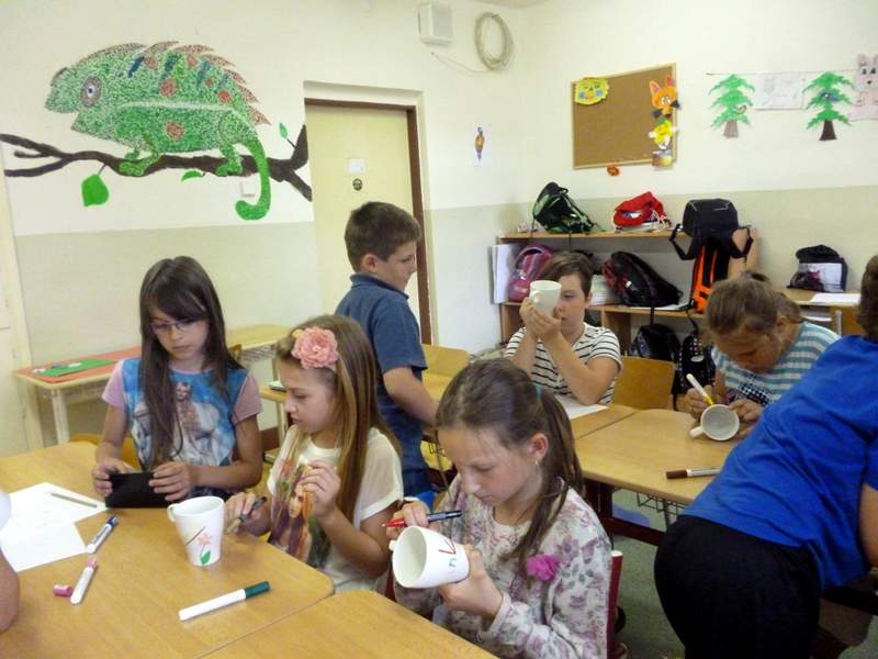 Školní rok jsme ukončili malováním hrnečků. Každý si svůj vlastnoručně vyzdobený hrníček odnesl domů na prázdniny.