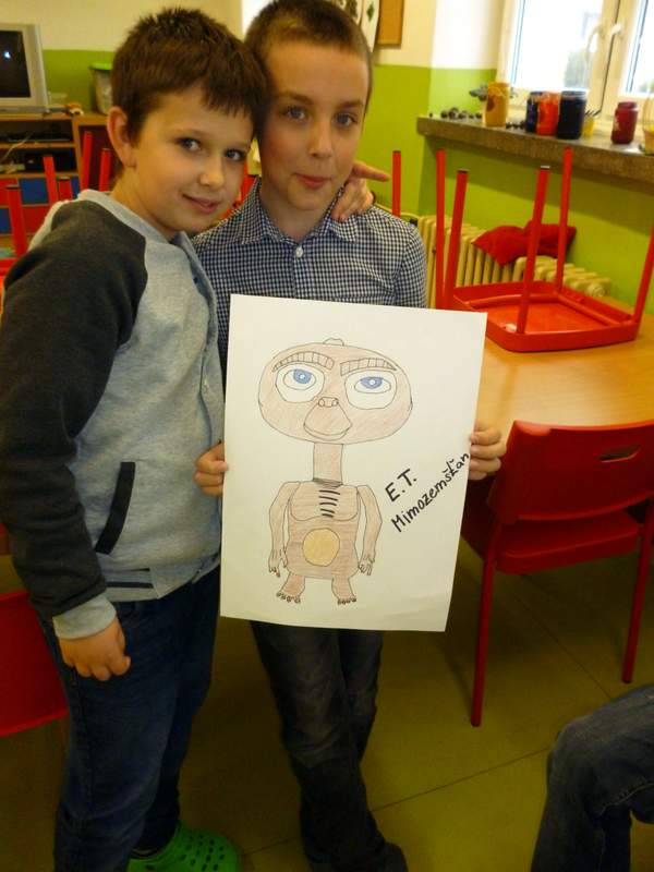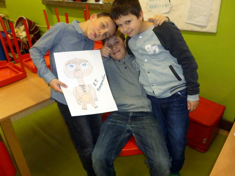 V neděli 17. 12. se bude hrát v kině v Bystřici pod Hostýnem sci-fi film E. T. MIMOZEMŤAN. Děti k filmu malovaly obrázky a z papírových krabic vyráběly E. T. MIMOZEMŤANA. Výrobky a obrázky našich dětí budou vystaveny v předsálí kina.