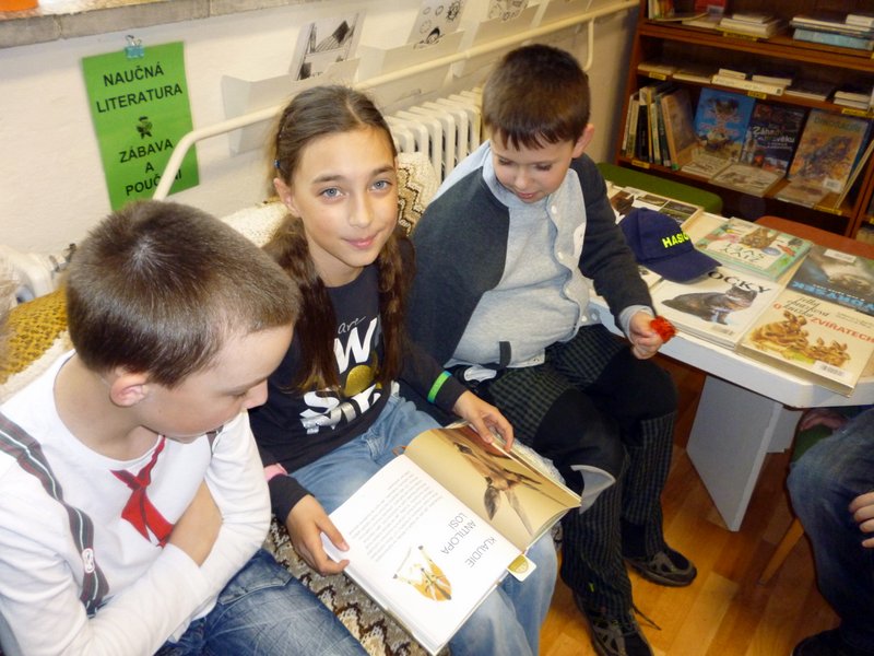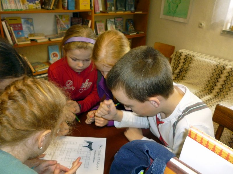 Ve čtvrtek 27. 4. jsme s dětmi z oddělení Žabiček navštívili obecní knihovnu v Dřevohosticích. Knihy jsme si však tentokrát nepůjčovali. Paní knihovnice si pro nás připravila zábavné odpoledne na téma: "Máme rádi zvířátka". Děti si prohlížely knihy o zvířátkách, povídali jsme si o nich, paní knihovnice nám četla úryvky z knih. Děti řešily kvízy, křížovky, bludiště, rébusy a doplňovačky. Všichni vymalovali obrázky zvířátek na výstavku. Děkujeme paní knihovnici Valčíkové za příjemné odpoledne. Děti s vychovatelkou Komoňovou