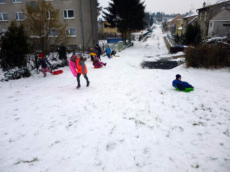 Konečně napadl sníh. Ve čtvrtek 8. února jsme všichni vyrazili na kopec u školy. Bobování mohlo začít! Pokud sníh neroztaje, půjdeme jezdit na bobech i zítra.