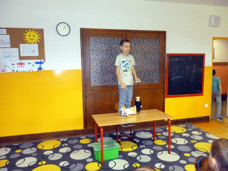 V úterý 22. 5. nám zahrál Eduard Foukal z 5. třídy loutkové divadlo "Kolumbovo vejce" se Spejblem a Hurvínkem. Loutkové divadlo se nám velmi líbilo.