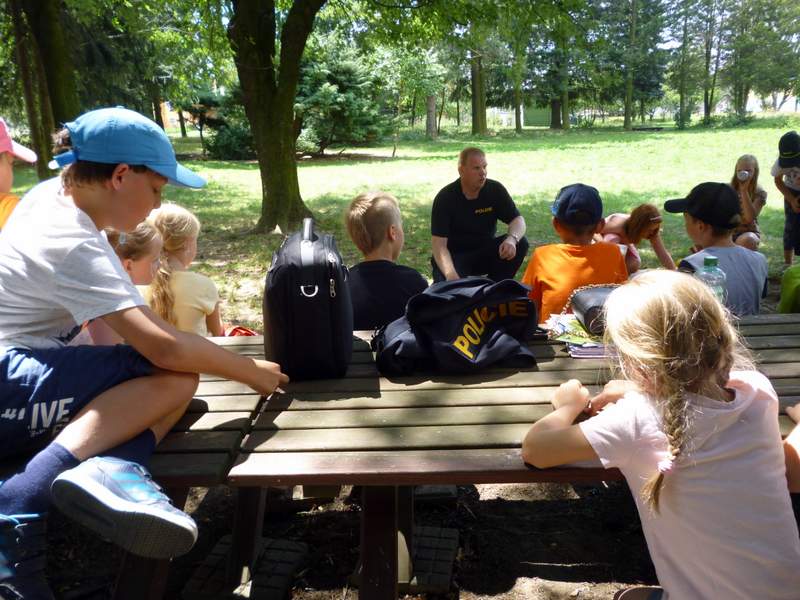 Ve čtvrtek 21. června nás navštívil pan Zátorský, který pracuje u policie. Přednášel nám o šikaně a problematice cizinecké policie. Děkujeme panu Zátorskému za zajímavou přednášku. Děti a paní vychovatelky.