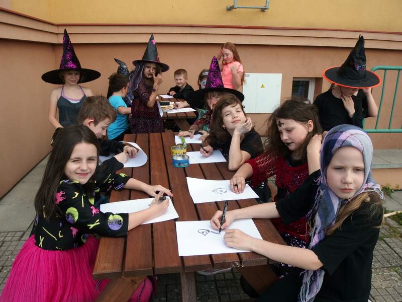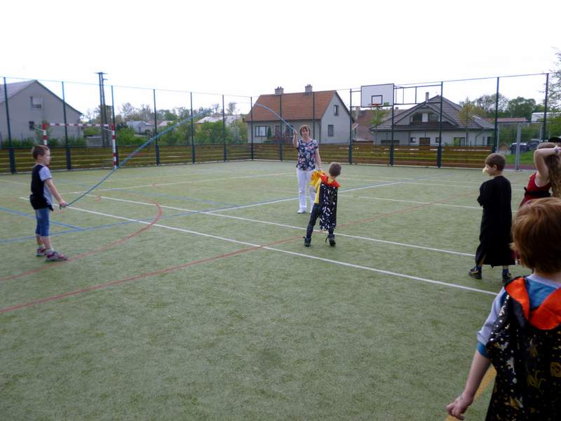 Všechny čáry světa znám, hned vás tady pochytám. V ropuchy vás proměním, že jsem strašná, dobře vím. Ve středu 25. dubna se konal ve školní družině "Slet čarodějnic a čarodějů". Děti si oblékly šaty, sukně, pláště, namalovaly se obličejovými barvami, nasadily klobouky, připevnily dlouhé prsty, pavouky, pavučiny, bradavice, vzaly si koště a čarodějný rej mohl začít. Venku svítilo sluníčko, takže se slet konal na školním hřišti. Kreslili jsme čarodějnice a vše, z čeho se vaří lektvar. Děti z 3. oddělení zazpívaly „Čarodějnickou píseň“. Na kytaru je doprovázel pan učitel J. Dopita. Zahráli jsme si čarodějnické hry, soutěže, honičky. Všichni dostali sladkou odměnu. Výherci soutěže „miss čarodějnice“ obdrželi věcnou odměnu. Rej čarodějnic se nám líbil.