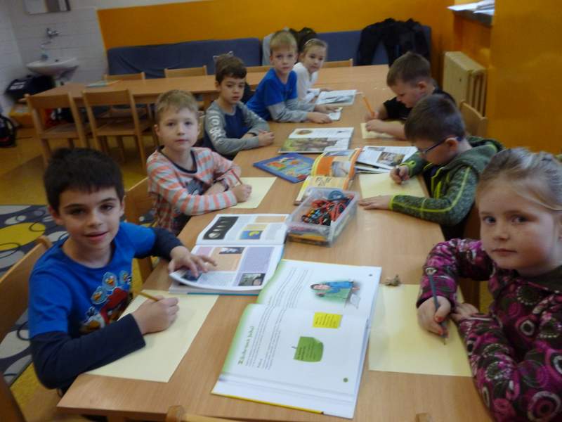 Po vánočních prázdninách si děti přinesly knihy, které dostaly jako dárek pod stromeček. Každý nám svoji knihu představil. O knihách jsme si povídali, četli z nich ukázky, malovali obrázky. Knihy jsme si v družině vystavili (pohádkové, naučné, komiksy).