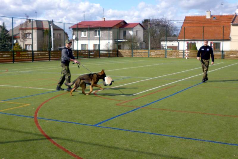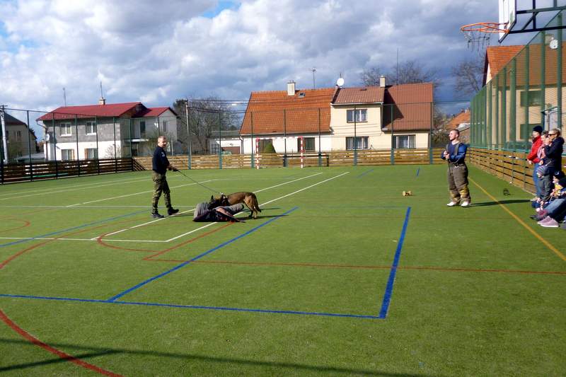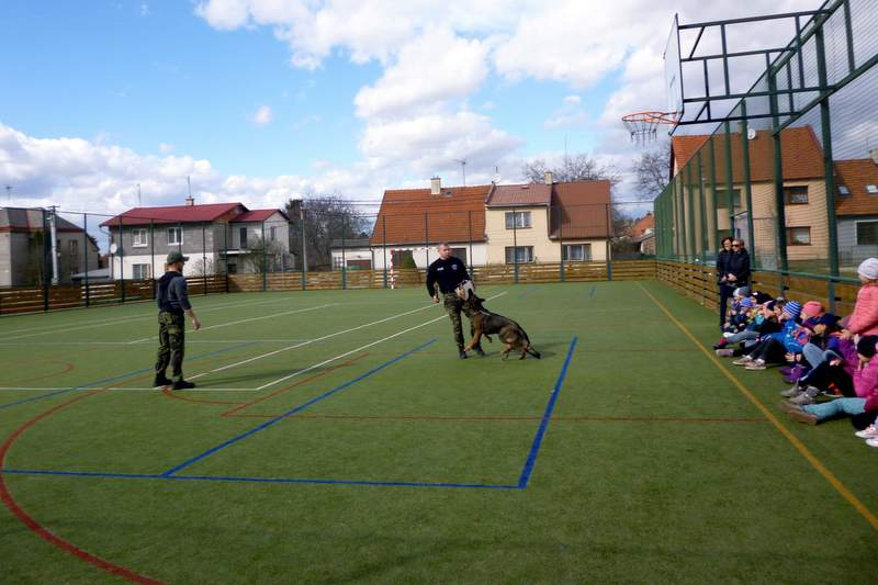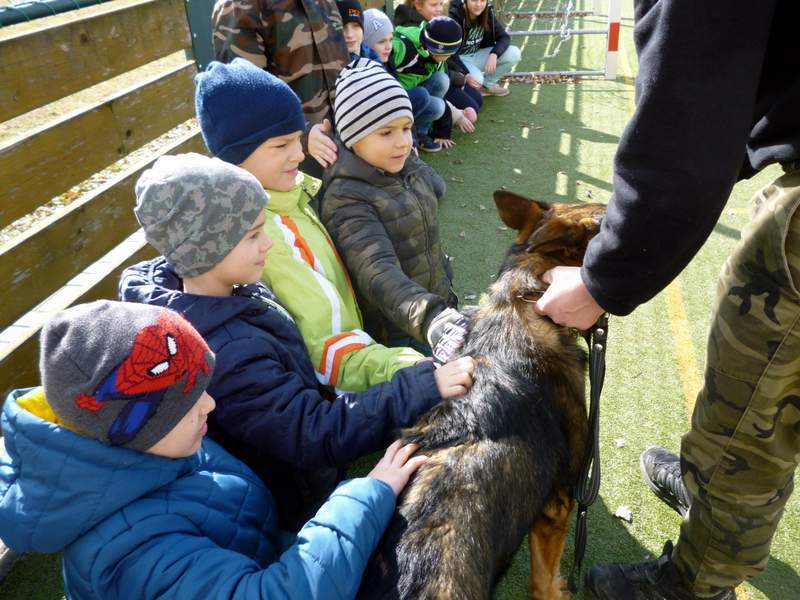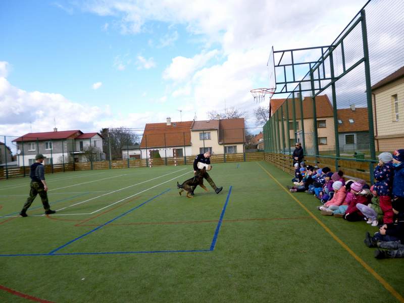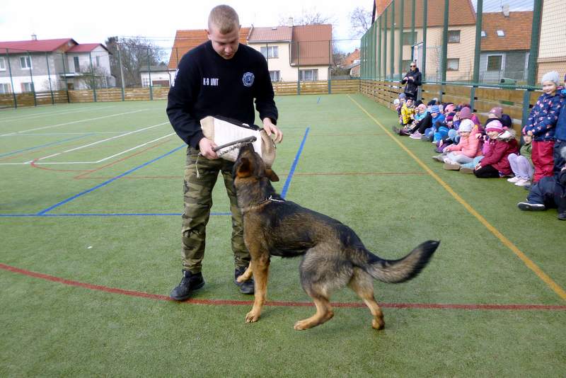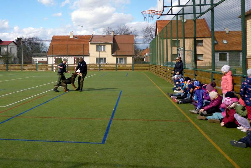 V pátek 8.3 nám předvedli policisté ze Zlína (K9 training center) výcvik psů. Předvedli dopadení a zneškodnění pachatele. Ukázka proběhla na školním hřišti. Výcvik psů se nám všem líbil. Za vydařenou akci děkujeme. Děti a paní vychovatelky z Dřevohostic.