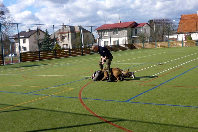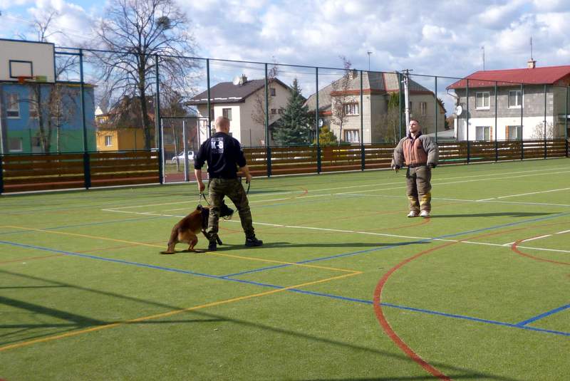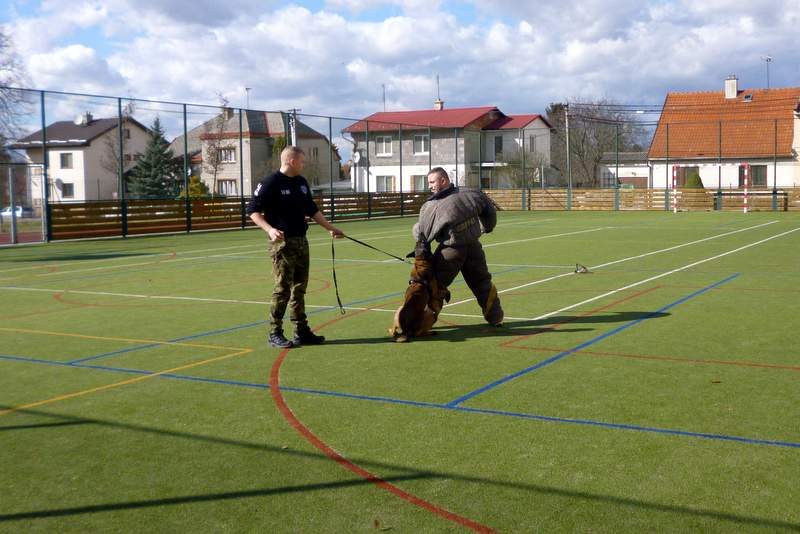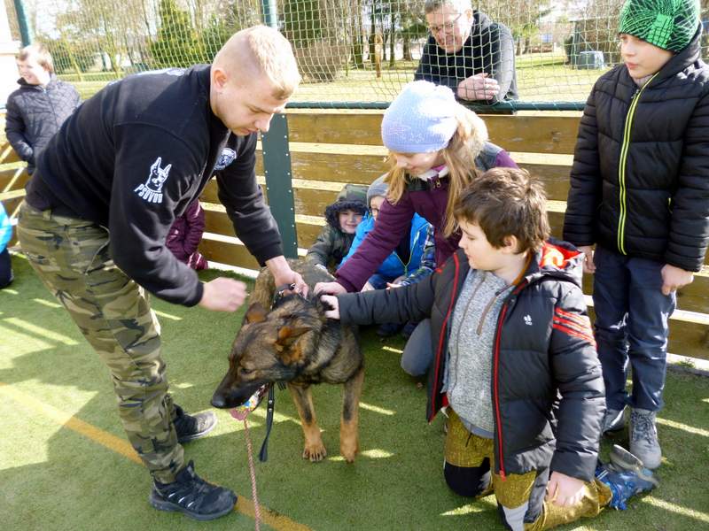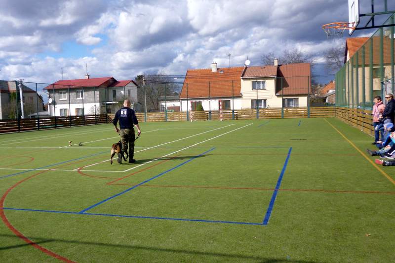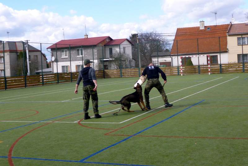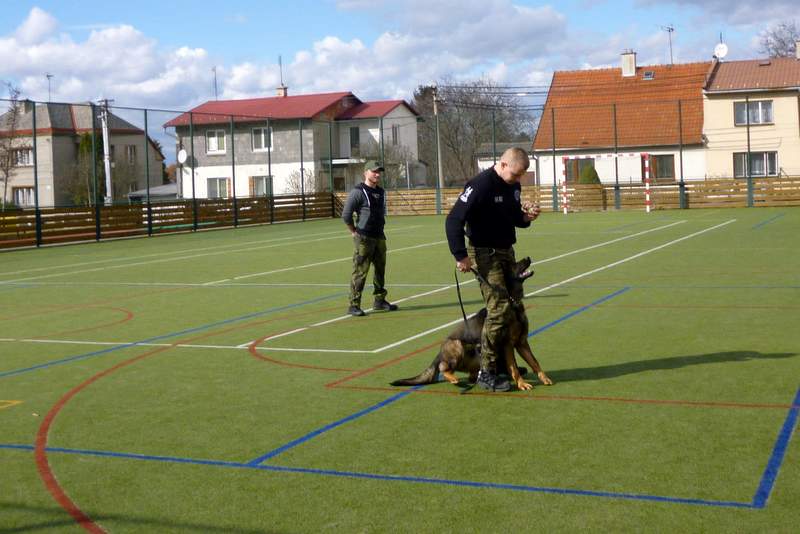 V pátek 8.3 nám předvedli policisté ze Zlína (K9 training center) výcvik psů. Předvedli dopadení a zneškodnění pachatele. Ukázka proběhla na školním hřišti. Výcvik psů se nám všem líbil. Za vydařenou akci děkujeme. Děti a paní vychovatelky z Dřevohostic.