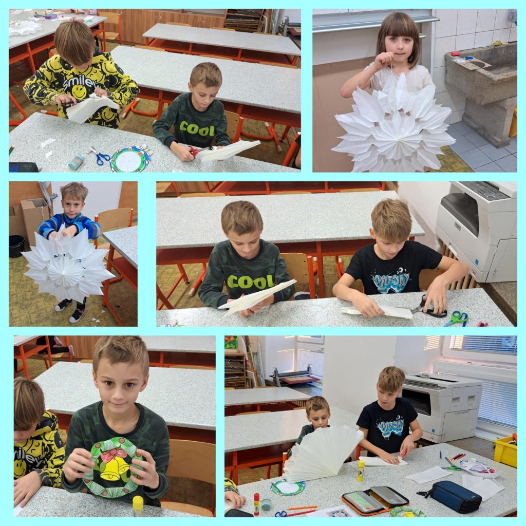 Prostorové výrobky z papíru (Adventní věneček a hvězda).